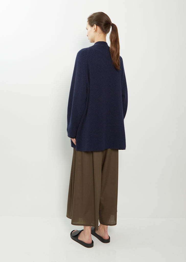 Worn with: Chunky Boatneck Linen Cashmere Sweater — Black, Wide Silk Pants — Military, and Round Slider — Black.