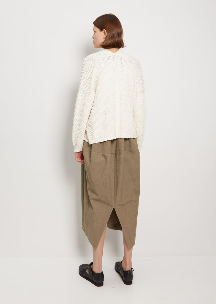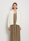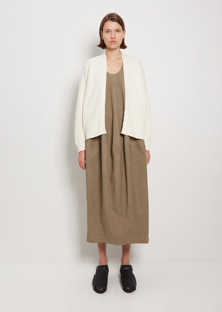 Lauren Manoogian natural open front cardigan in cotton knit with a dry hand and subtle stretch. Features dimensional dot texture throughout and rib trim finish along cuffs and hem. Relaxed, wide fit.