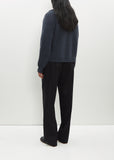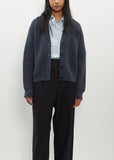 Margaret Howell uniform blue collared V-neck cardigan with signature raglan sleeve in wool ribbed knit. Tonal button fastening.