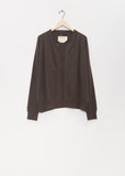 Frenckenberger dark olive green open cardigan with raglan sleeves in a mid-weight cotton and cashmere blend. Features a rib trim finish at neck, cuffs and hem. Relaxed fit.