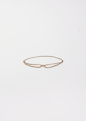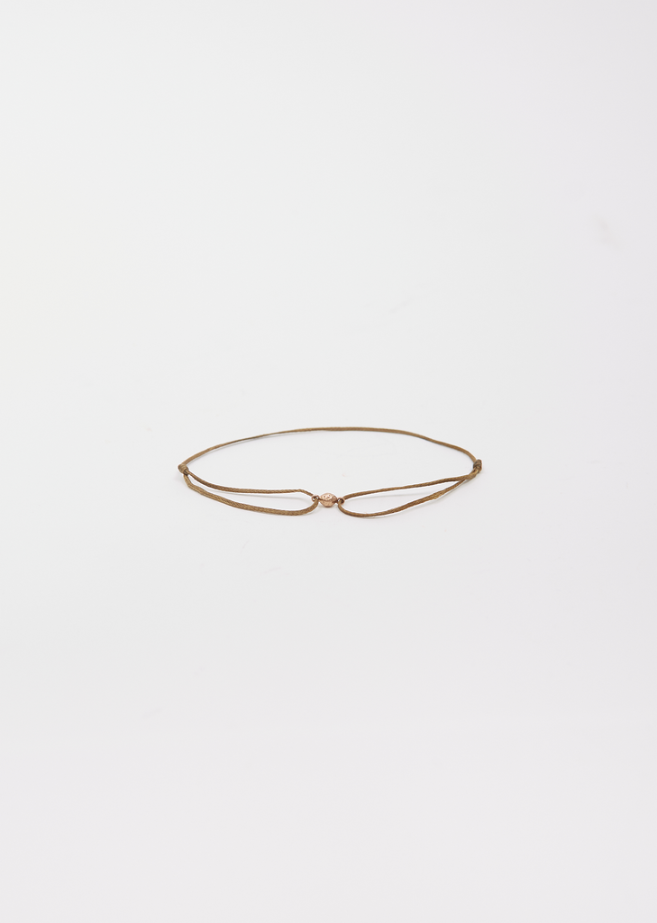 Mira Stella sea kale seed bracelet made to scale on an adjustable olive green waxed cord in 18-carat rose gold.