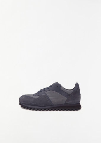 Spalwart steel blue lace-up low-top sneakers in suede, nappa leather and a polyamide airbag fabric. Features a round toe, woven brand tag at tongue, and lined with a beige calfskin leather.