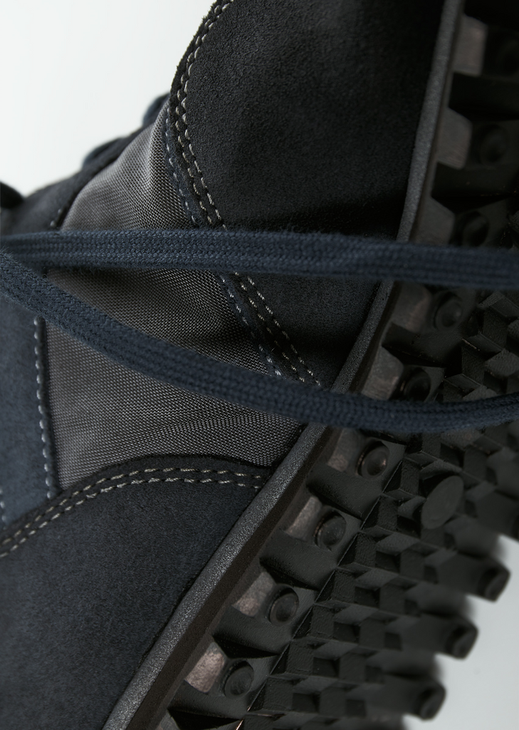Color: Steel Blue. Upper: 75% Cow Leather, 25% Textile, Sole: Rubber. Imported.