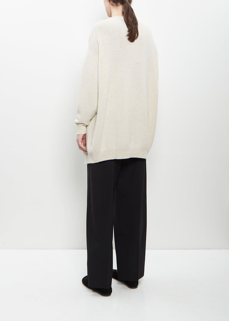 Worn with: Cashmere Seamless Pullover Long — Light Grey, Wool Pleated Long Pull-On Pant, and Suede Boheme MJ — Black