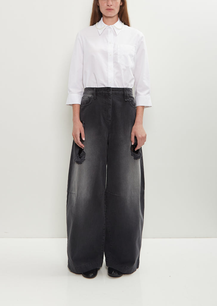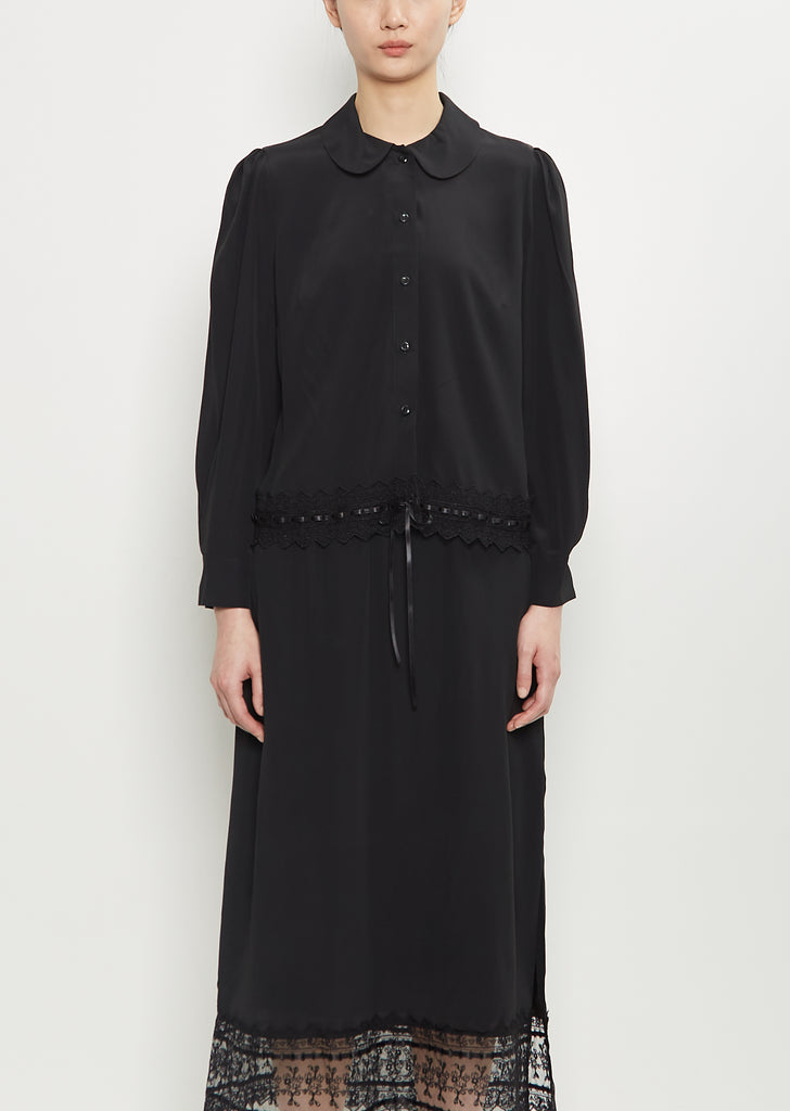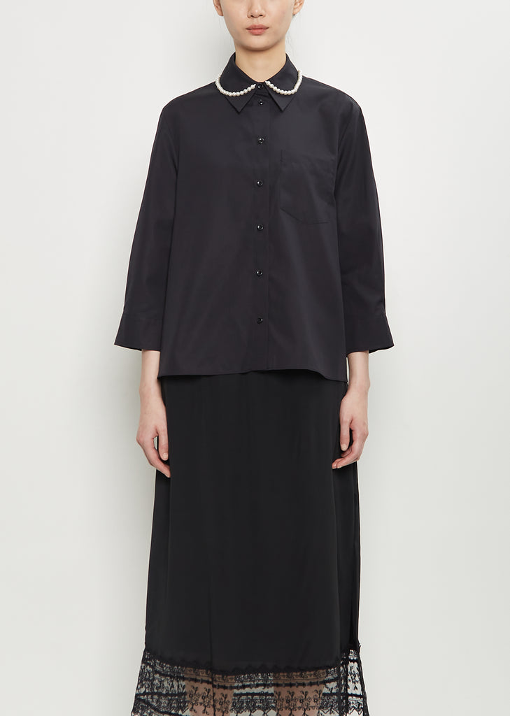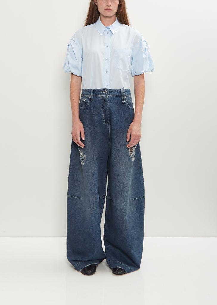 Ramie Cotton Sailor Collar Puff Sleeve Shirt