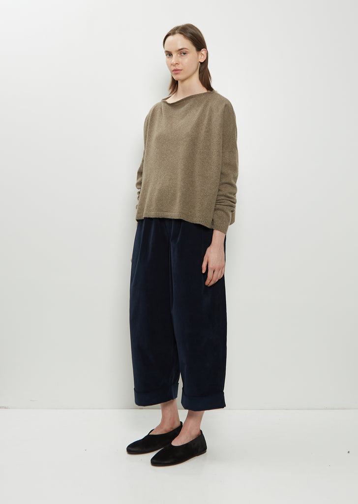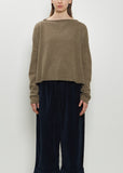 Album di Famiglia marron glace sweater with a wide boat neckline in lightweight cashmere knit. Features dropped shoulders and ribbed trim finish at neckline, cuffs, and hem.