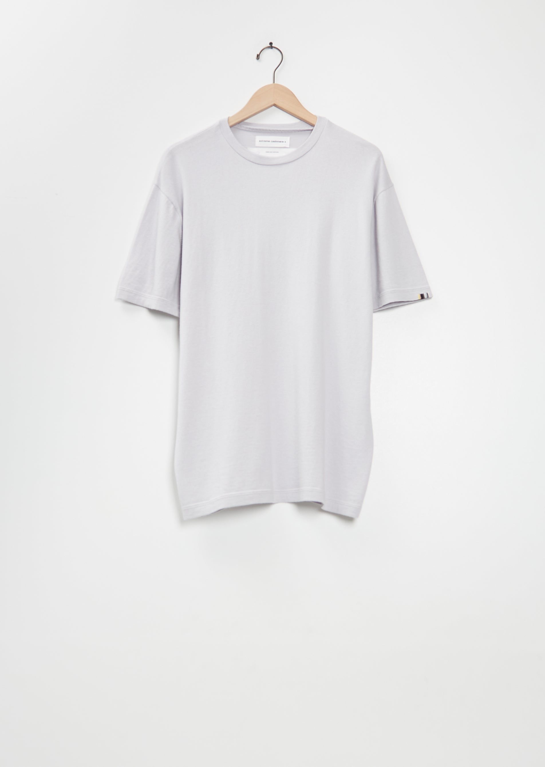 Extreme Cashmere light blue relaxed fit tee with a round neck and dropped shoulders in soft and breathable cotton and cashmere blend jersey. Finished with a rib trim at neckline.