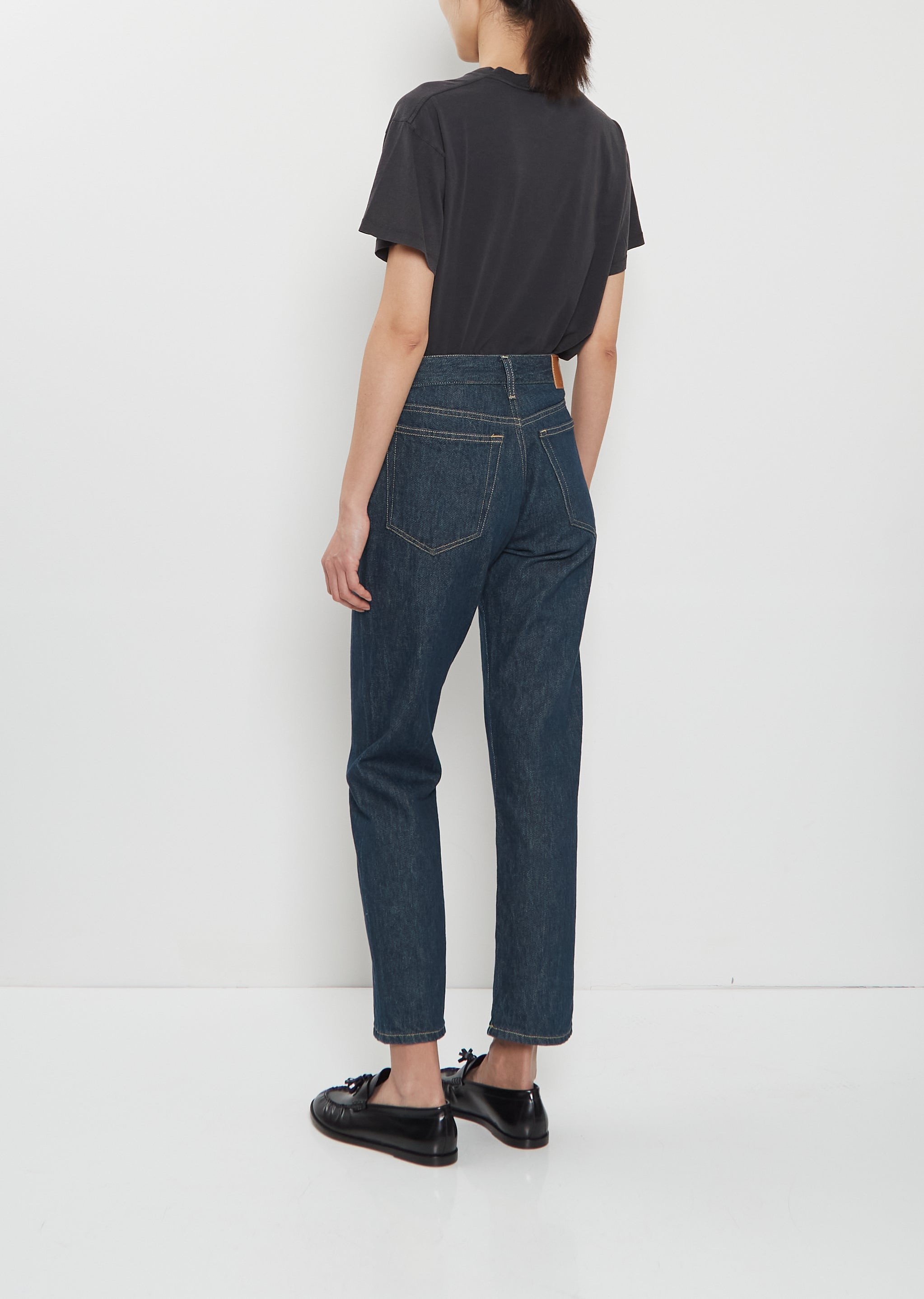 6397 dark indigo signature low-rise jean with slightly cropped and closer fit straight legs in a crisp cotton rinsed denim. Features belt loops, a 5-pocket construction, silver-tone hardware, contrast stitching throughout and button and zip-fly fastening.
