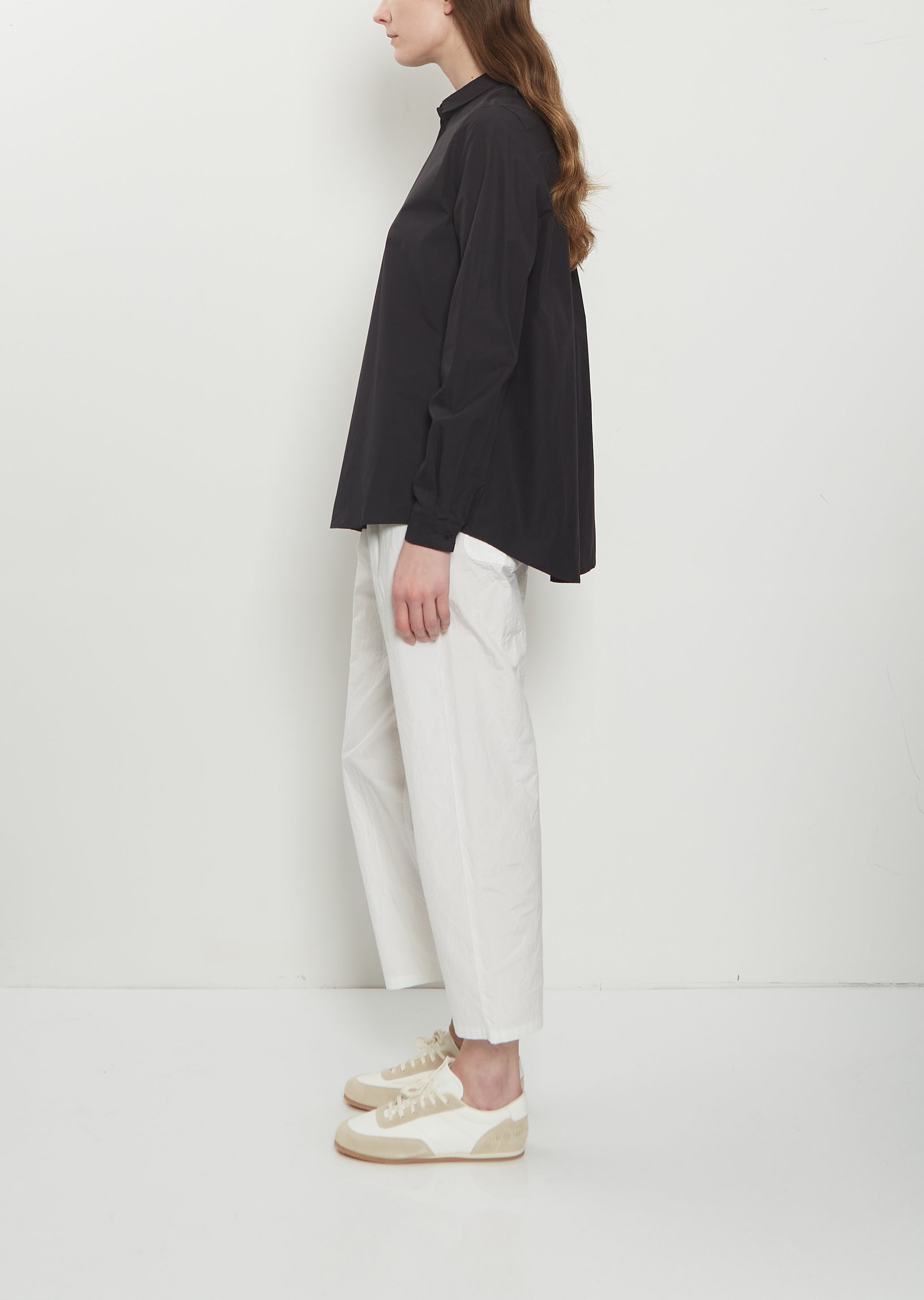 Apuntob black shirt with a mini collar and tonal button front in soft and lightweight cotton poplin. Features dropped shoulders and buttoned cuffs. Relaxed fit.