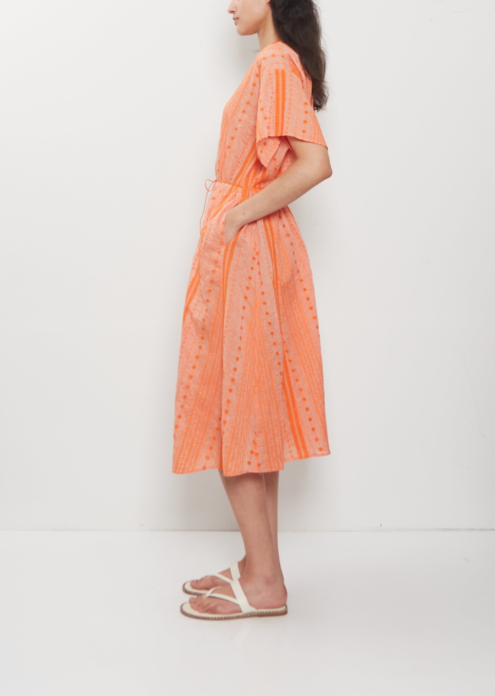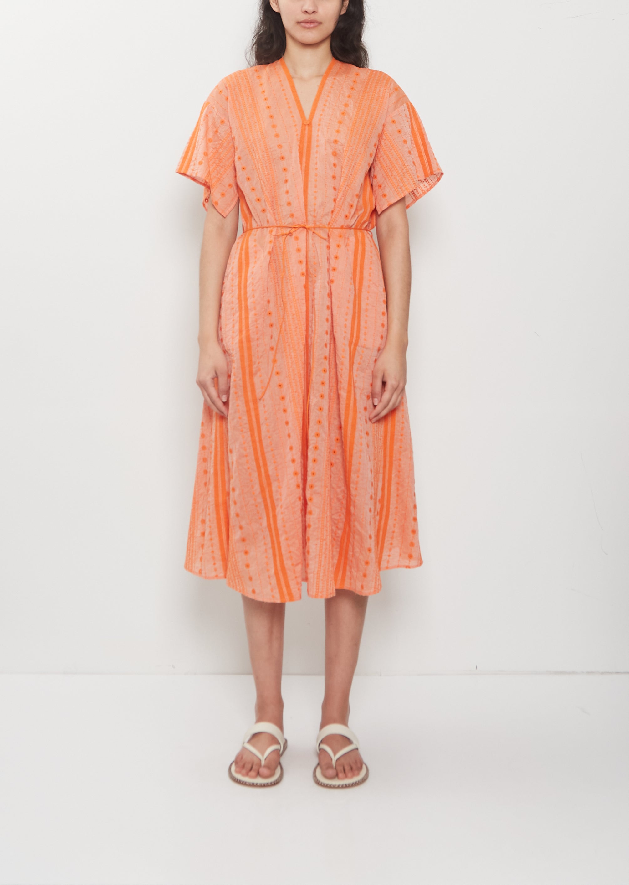 V-Neck Embroidery Cotton Ramie Dress — Orange