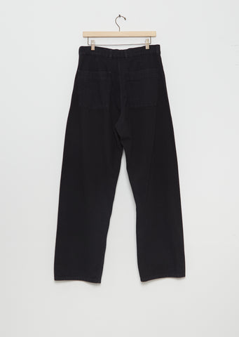 Arpenteur black mid-rise trousers with a wide, seamless leg crafted in thick and durable washed cotton twill for softness.