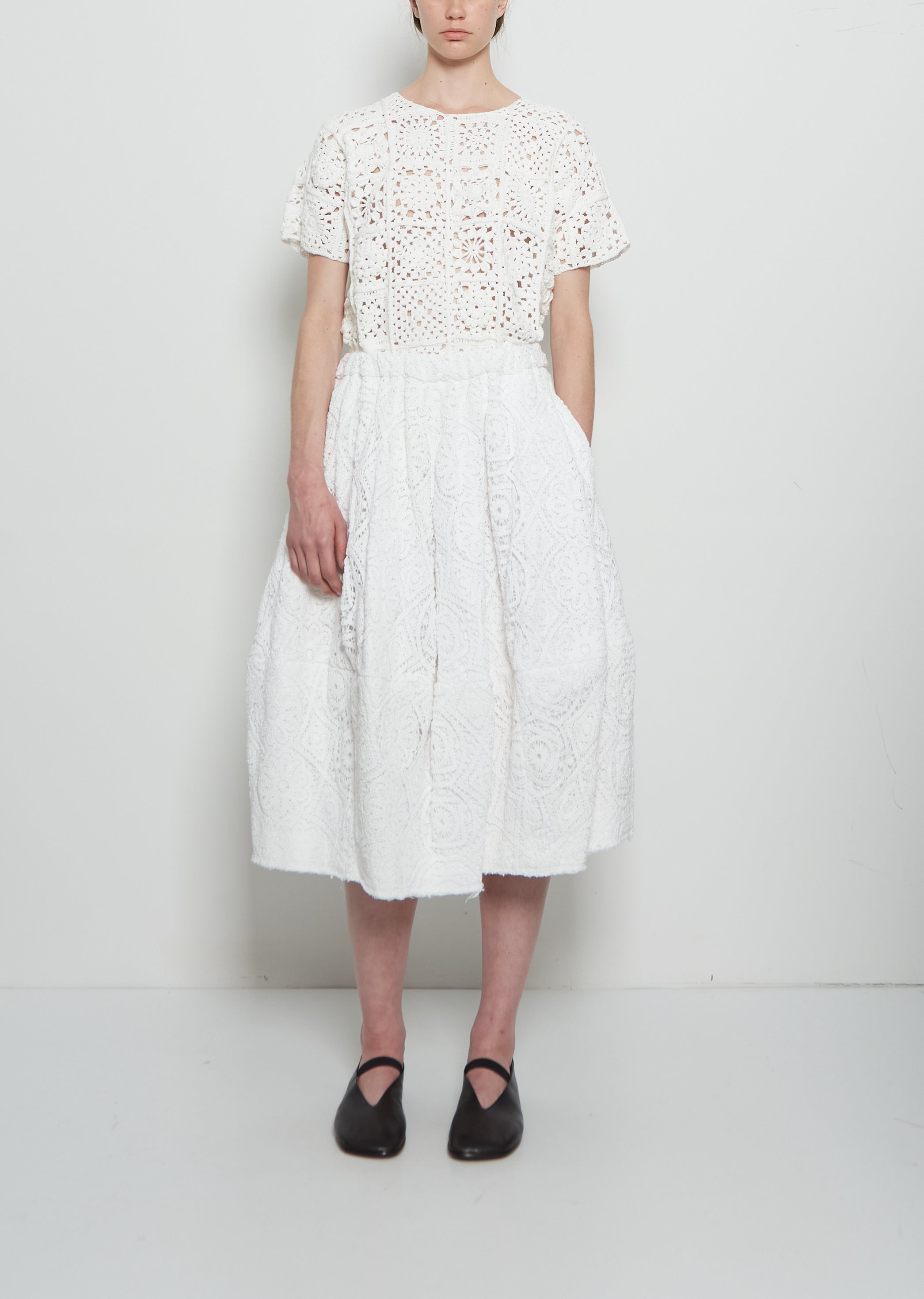 Comme des Garçons off white lace balloon shape skirt with elasticated waist and inner drawstring.