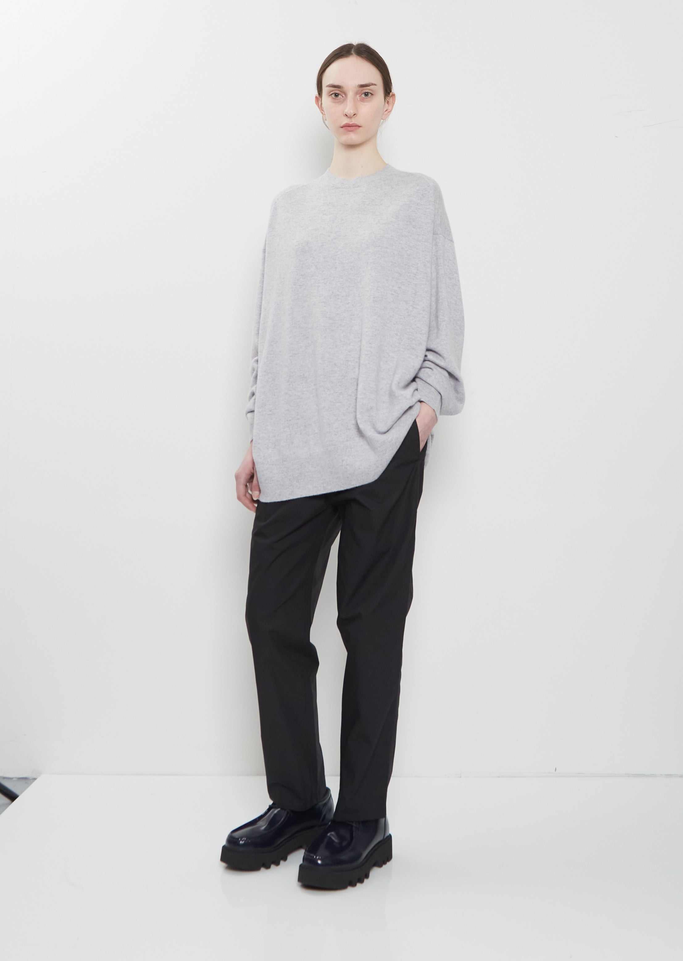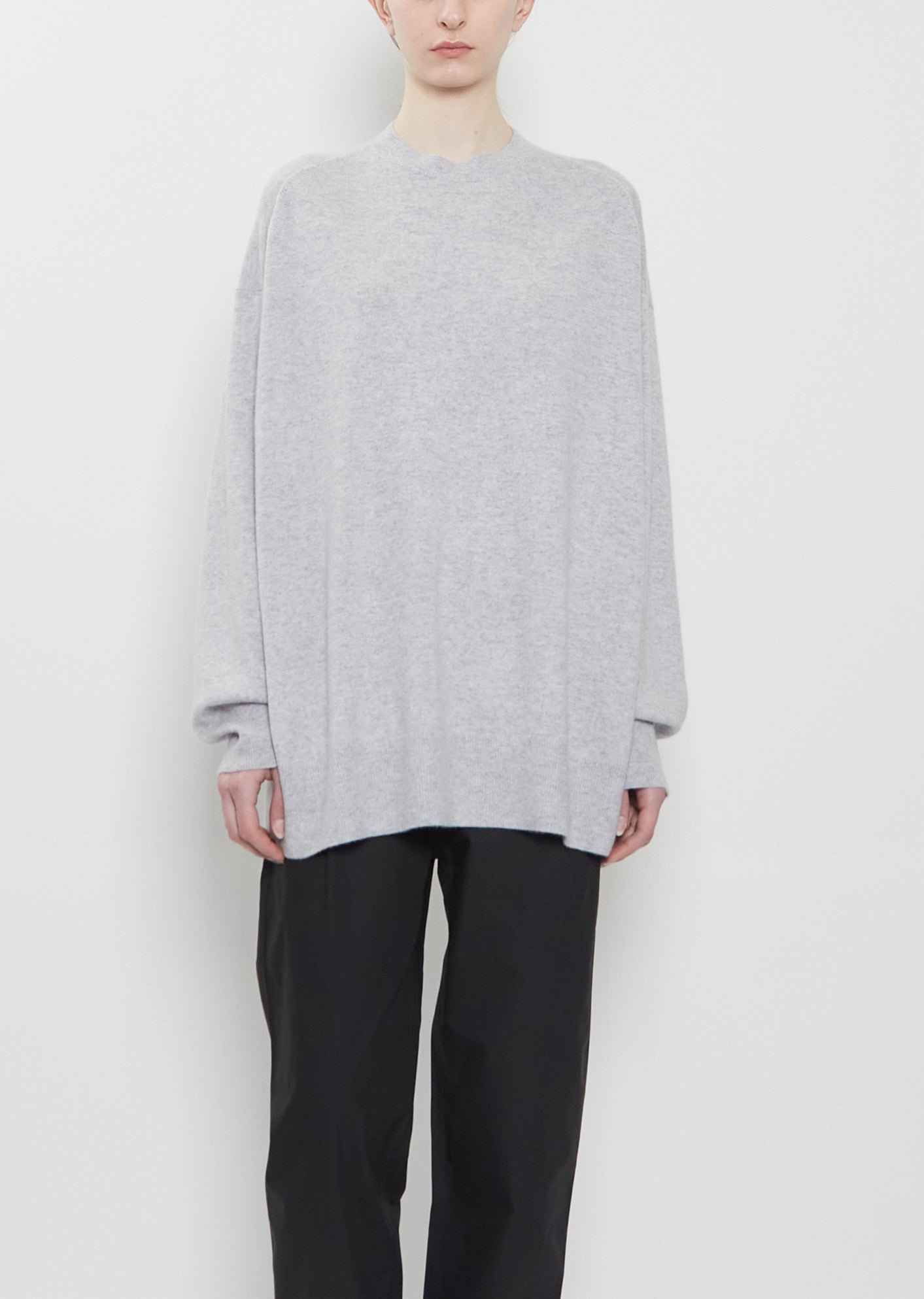 Sofie D'Hoore grey oversized sweater with a crew neck and dropped shoulders in a soft and fine cashmere knit. Features elongated sleeves and ribbed trim finishings at neck, cuffs and hem. Relaxed, easy fit.