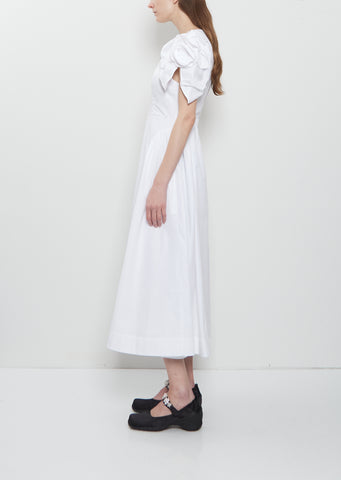 Rose Puff Sleeve Cotton Dress — White