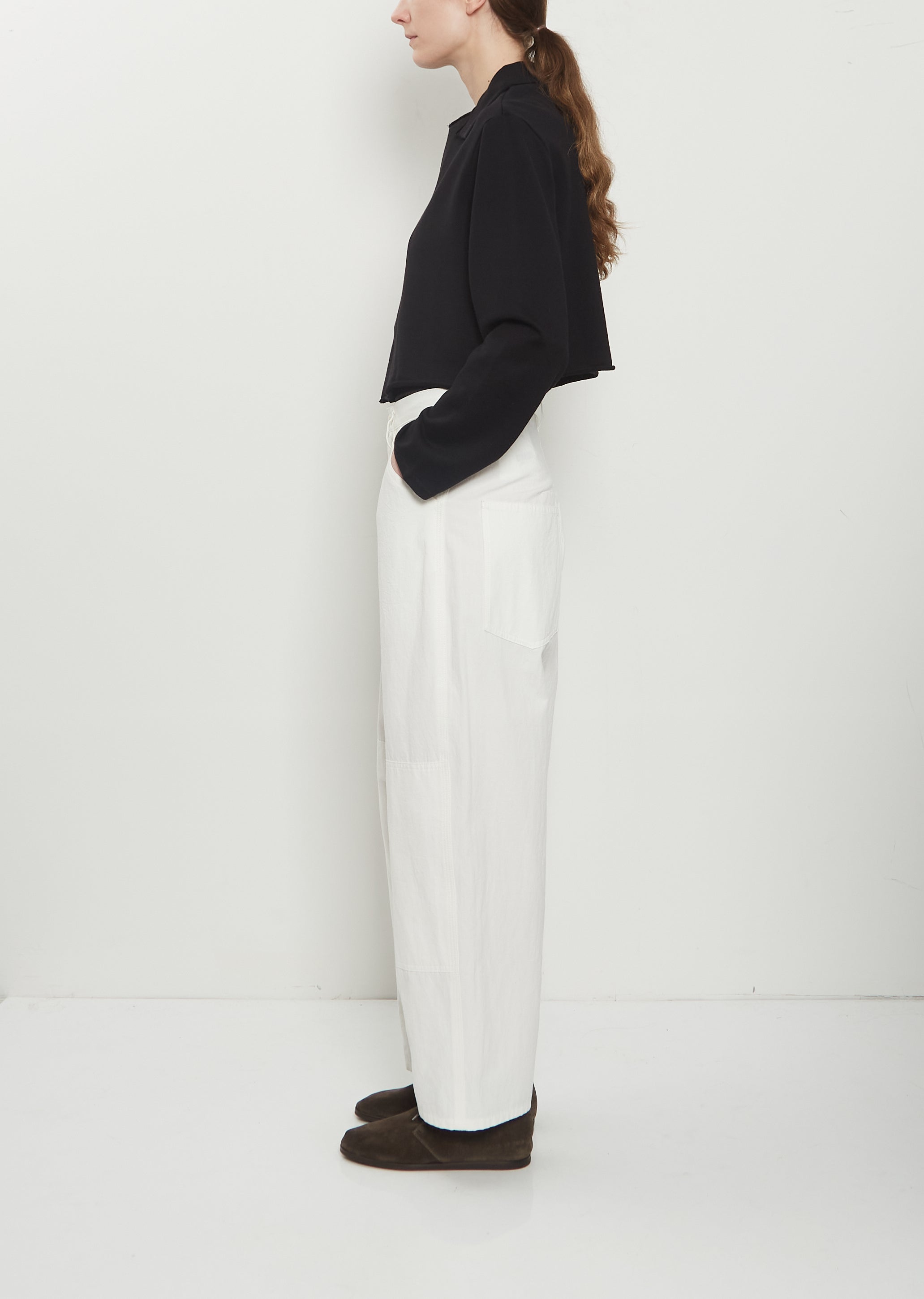 Y's whhite mid-rise pants with wide, slightly tapered legs and seam details in lightweight cotton twill. Features belt loops, angled pockets, low patch pockets at back, and button and zip-fly fastening. Relaxed fit.