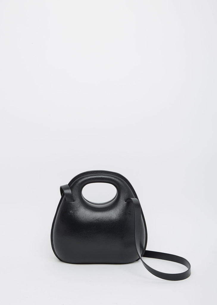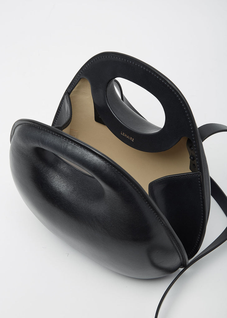 Classic hard case 'Egg' bag in black leather. A quintessential Lemaire handbag. 100% Cow Leather. Made in Italy.