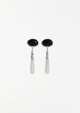 Corali sterling silver earrings with black onyx and light grey agate stones. Handcrafted in Copenhagen.