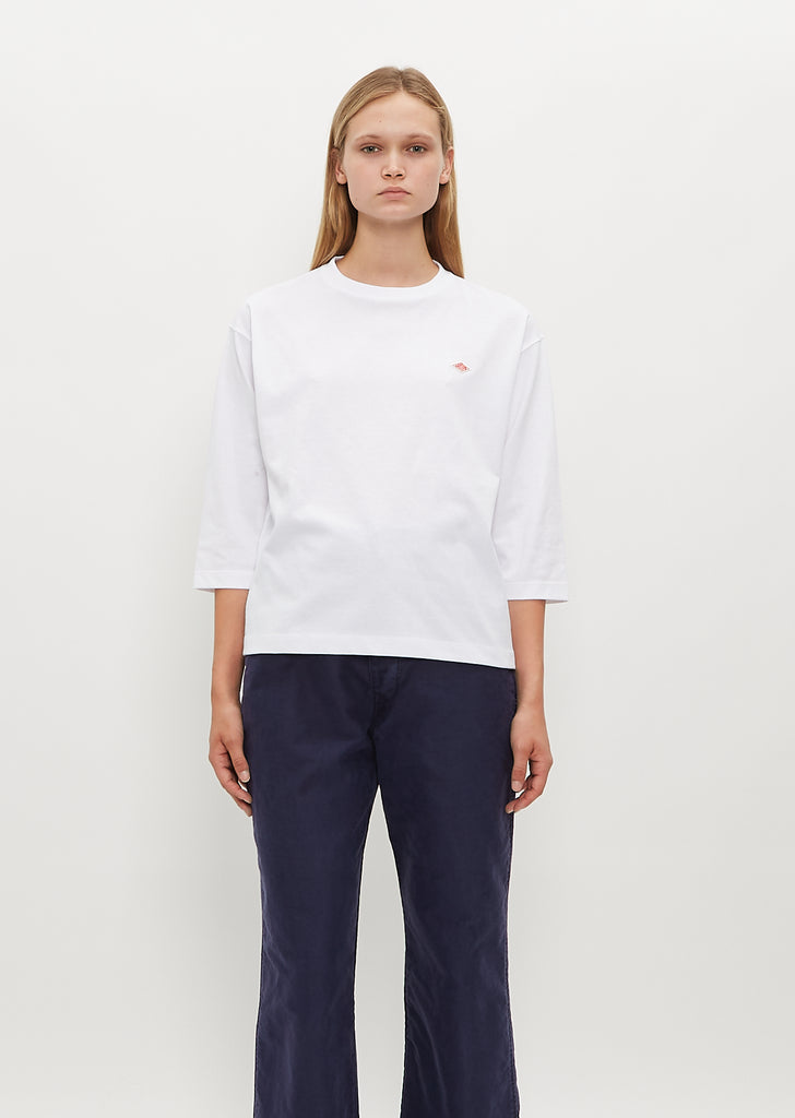 Danton black and white stripped crewneck t-shirt in a soft cotton blend knit. Features a contrast neckline and 3/4 sleeves.