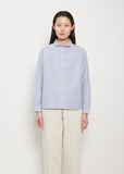Round Collar Long Sleeve Cotton Shirt — Blue