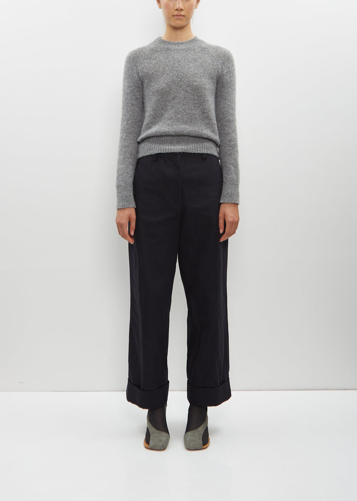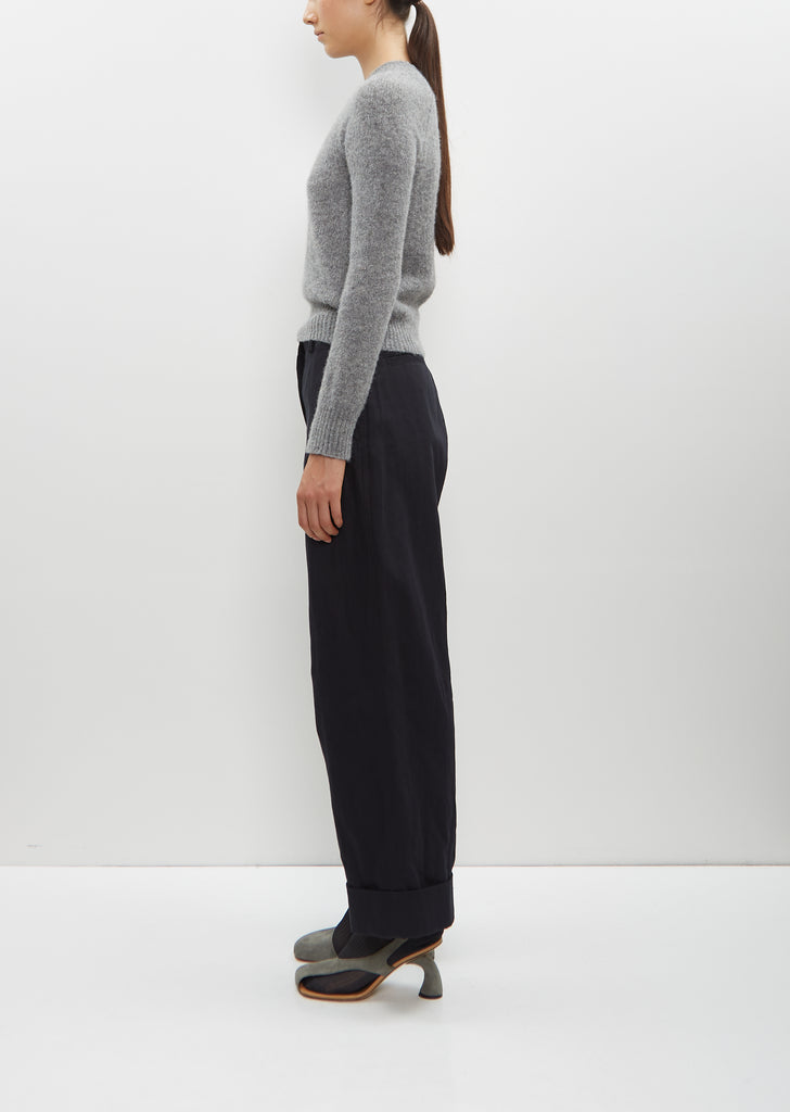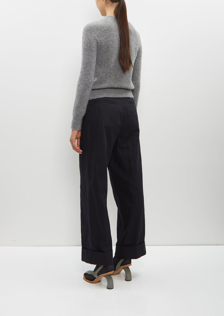 Dries Van Noten signature versatile wide leg trousers with wide cuffs in washed cotton and linen blend. Features belt loops, angled pockets, welt pockets at back and button and zip-fly fastening.
