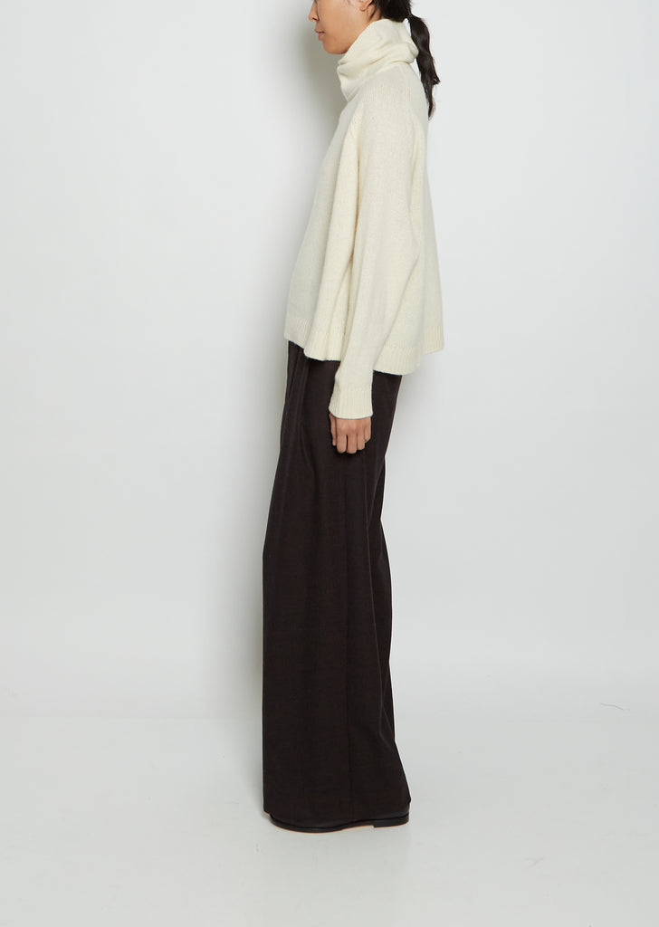 Dušan off-white turtleneck sweater with a raglan sleeve and wide silhouette in a soft cashmere knit.