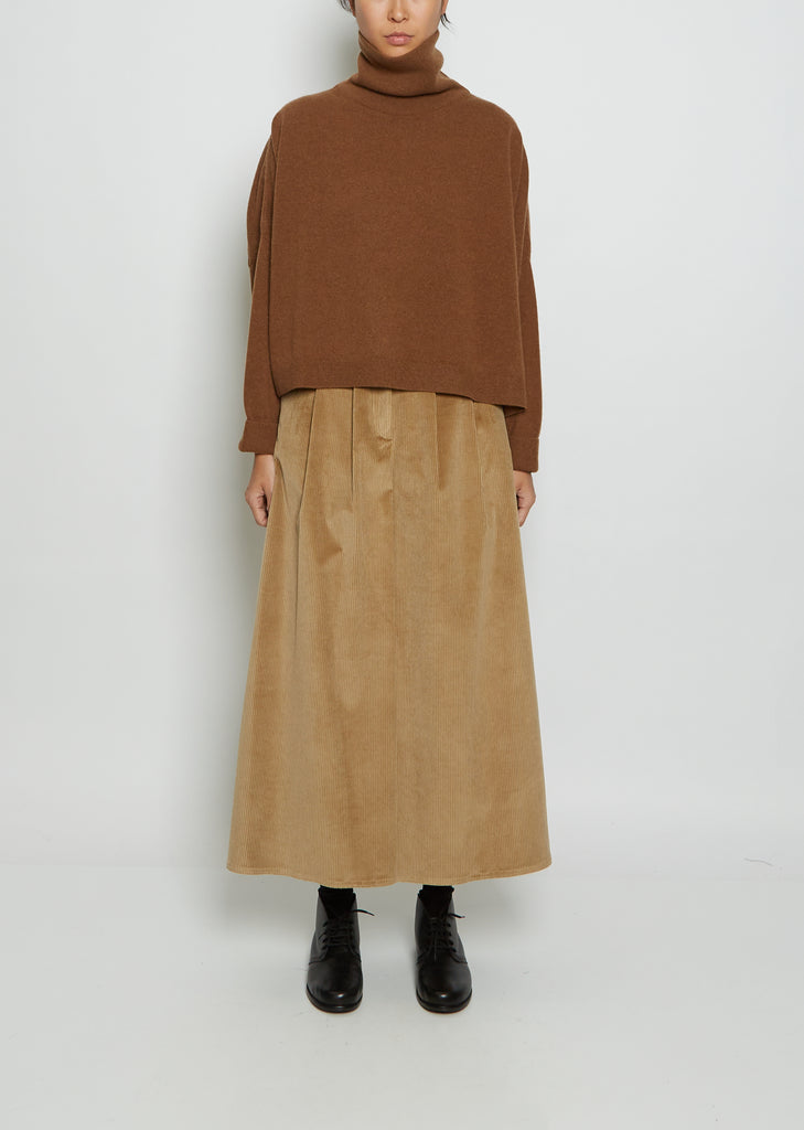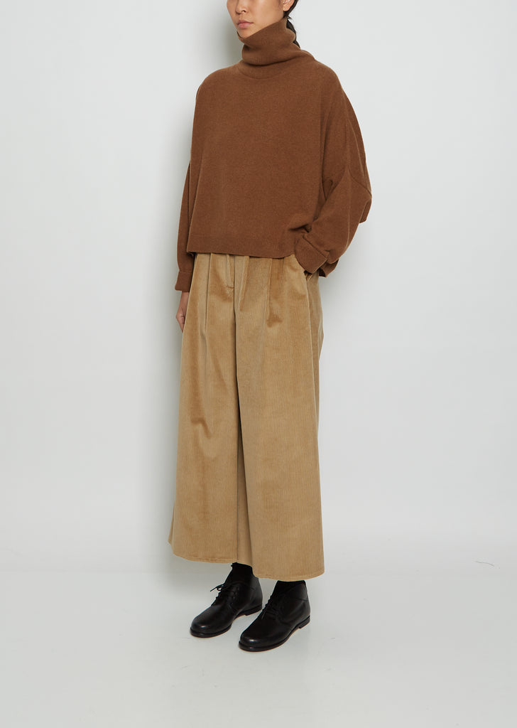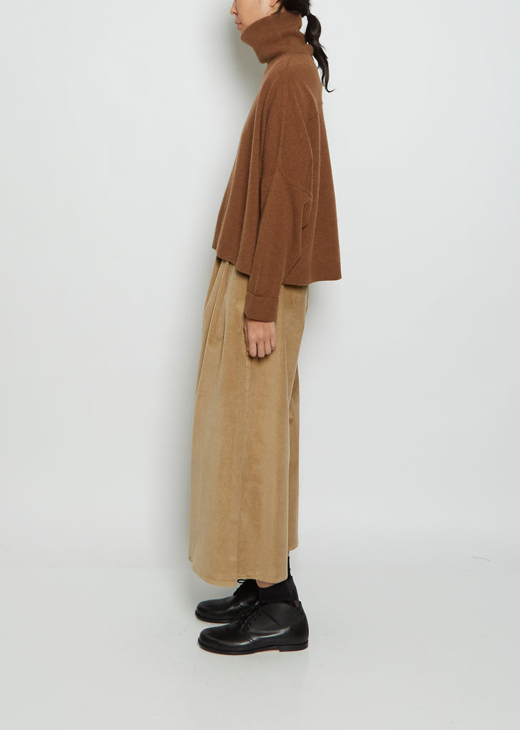 Dušan brown turtleneck sweater with an exaggerated dropped shoulder and wide silhouette in a soft cashmere knit.