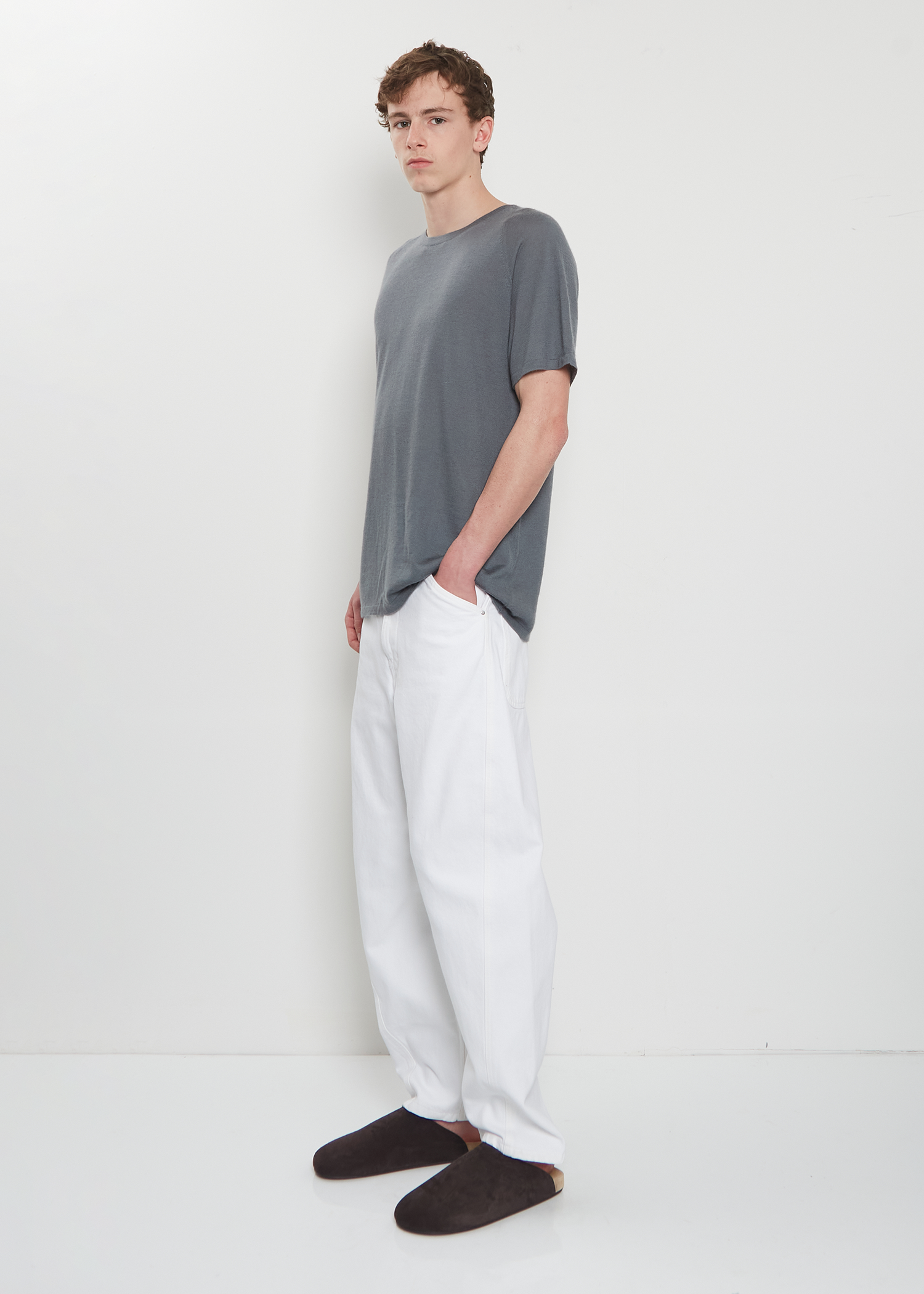 Frenckenberger grey t-shirt with a round neck, elongated bodice and raglan sleeves in lightweight luxurious cashmere knit. Relaxed fit.