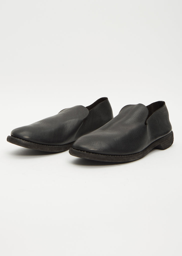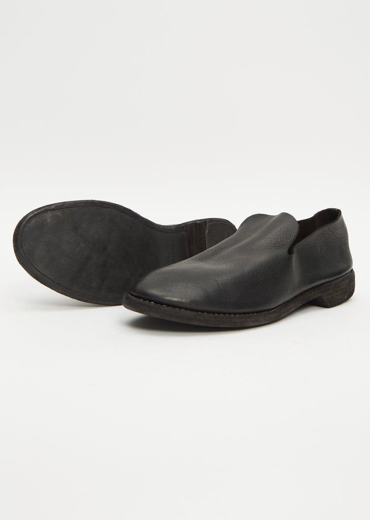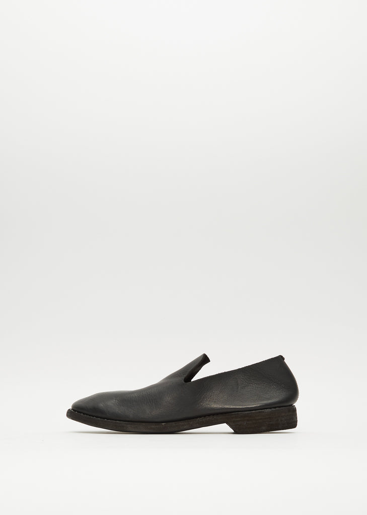 Guidi men's black 100 loafers handcrafted in full grained calfskin leather with a stacked leather heel and tonal topstitching. Fully lined in suede.