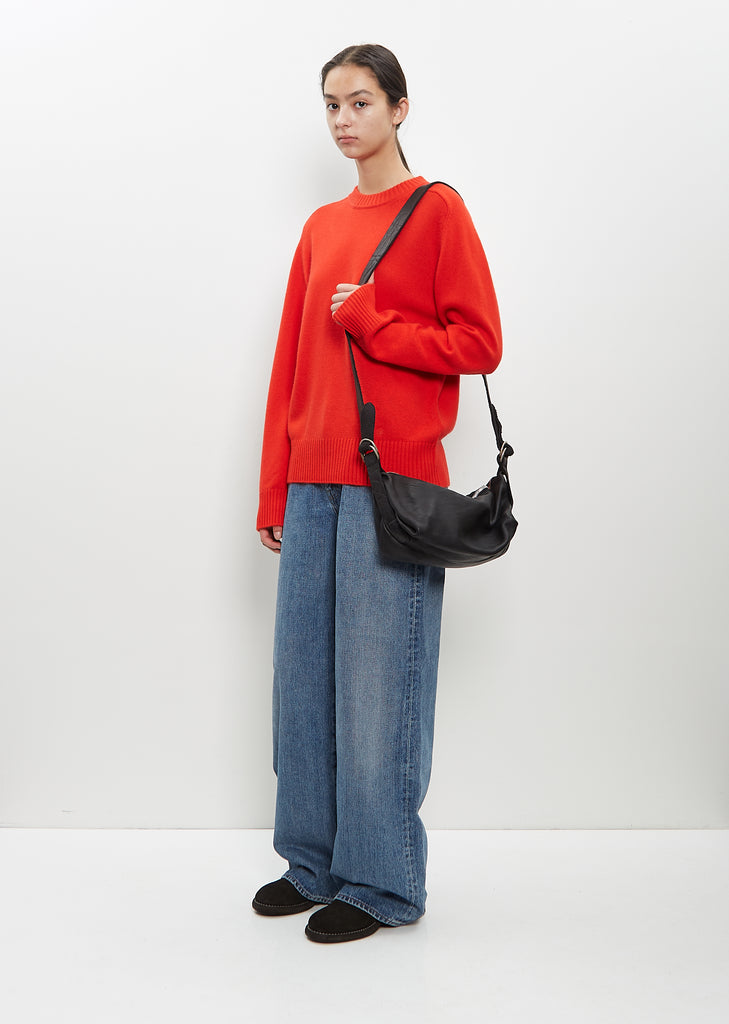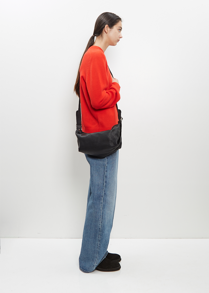 Guidi black crossbody shoulder bag with top zipper closure and adjustable strap in vegetable-tanned soft full grain horse leather. Comes unlined.