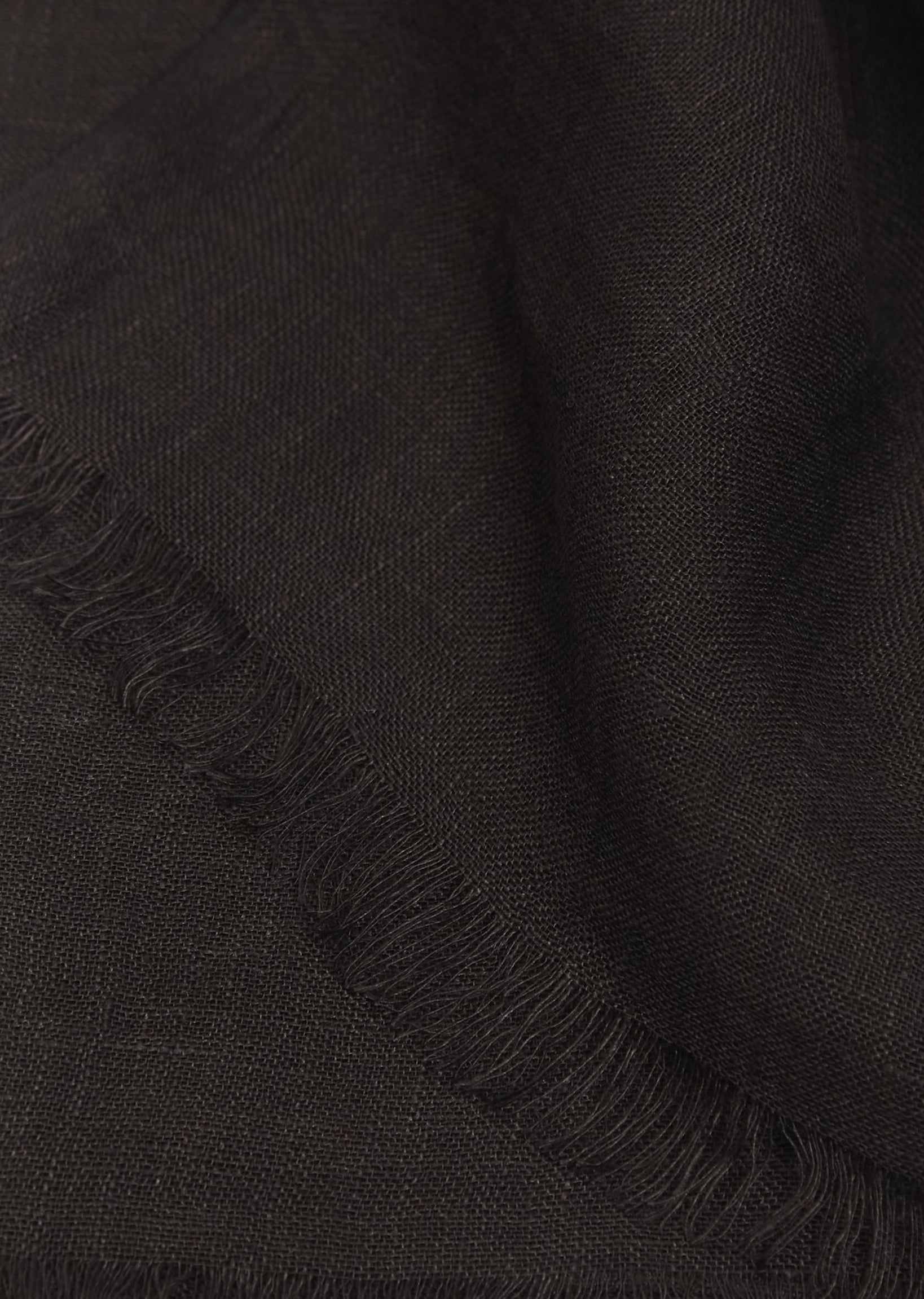 Denis Colomb black large shawl with delicate fringed edges in lightweight, breathable and fine hand-woven linen.