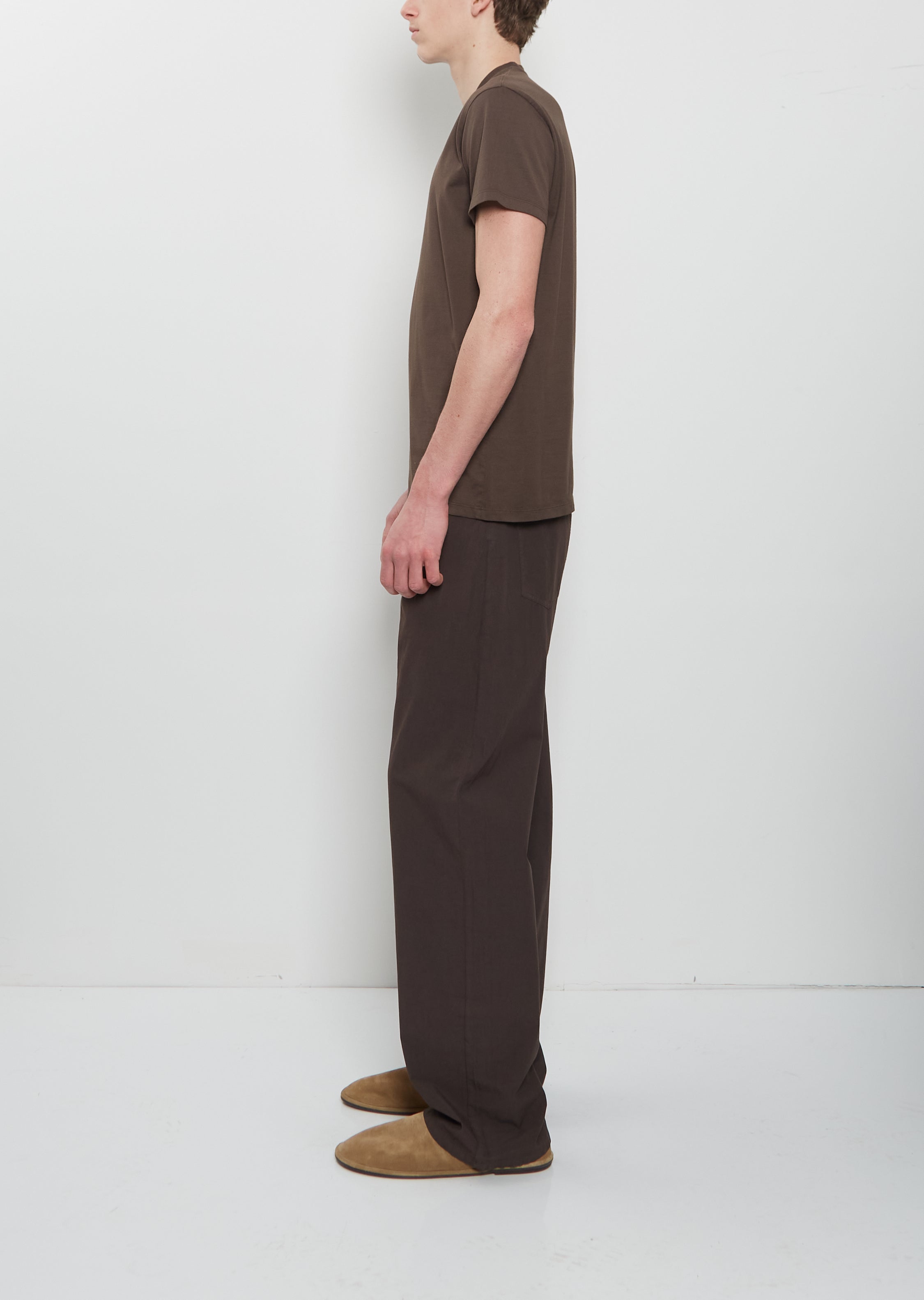 Labo.art dark brown sleeve tee with a round neckline and set-in shoudlers shoulders in soft cotton jersey. Regular fit.