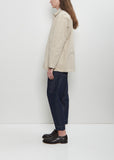 Toogood beige relaxed jacket in a mid-weight organic cotton twill. Features a button front closure, dropped shoulders, buttoned cuffs, oversized front patch pockets, single interior patch pocket, and back vent. Comes unlined.