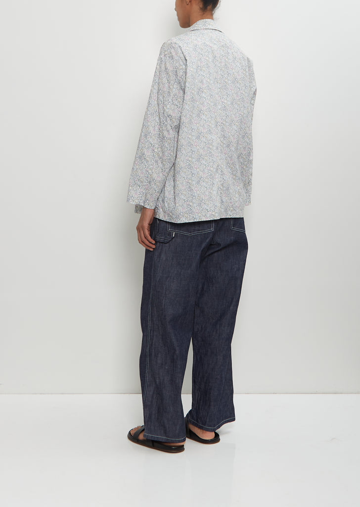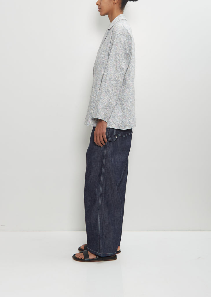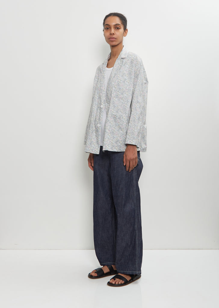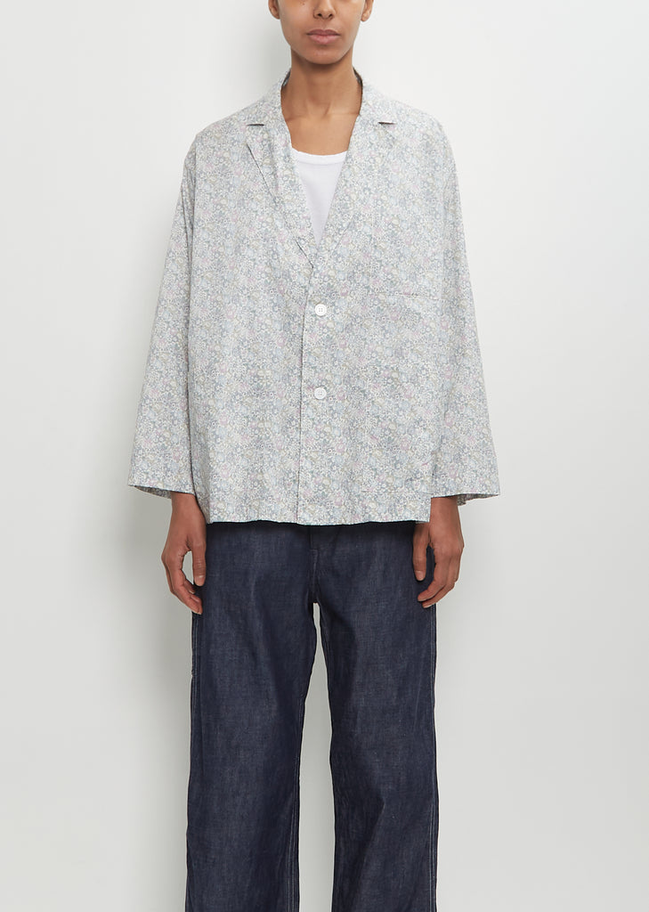 Toujours grey jacket with notched lapels in lightweight floral printed cotton poplin. Features a single chest patch pocket, two deep patch pockets, and a white buttons closure at front. Relaxed fit.