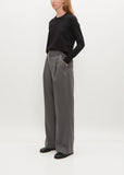 Loulou Studio dark grey melange wide leg pants with a mid rise fit in virgin wool. Features two front pleats, slip side pockets, welt back pockets, and belt loops. Finished with a concealed zip and tab closure.