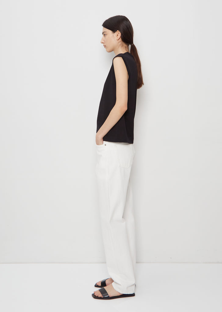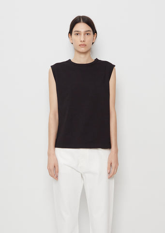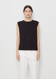 Loulou Studio black sleeveless tee with a round neck in soft supima cotton. Relaxed, boxy fit.