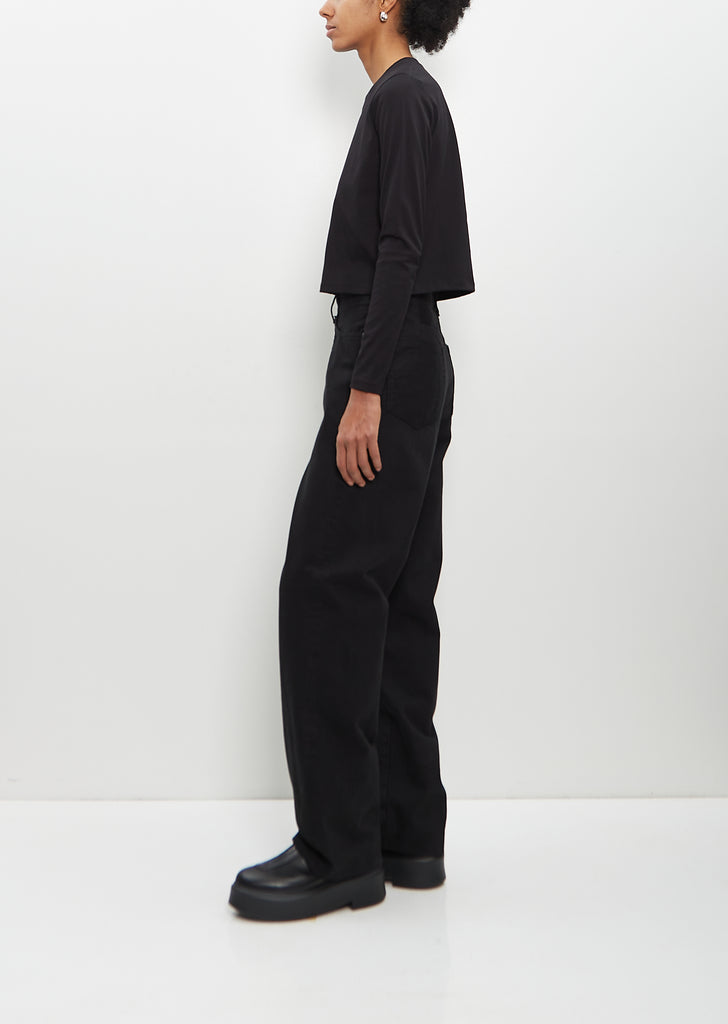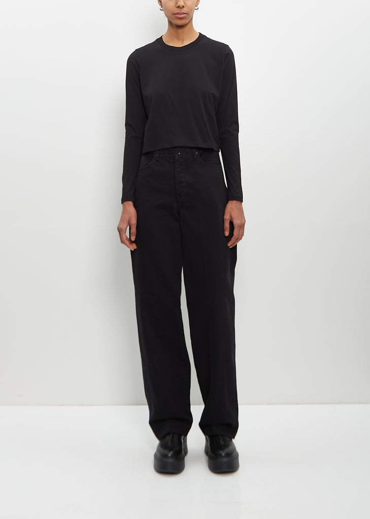 Loulou de Saison black signature slightly cropped long sleeve tee with a round neck in organic cotton. Features a boxy fit and clean wide hem finishing.