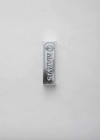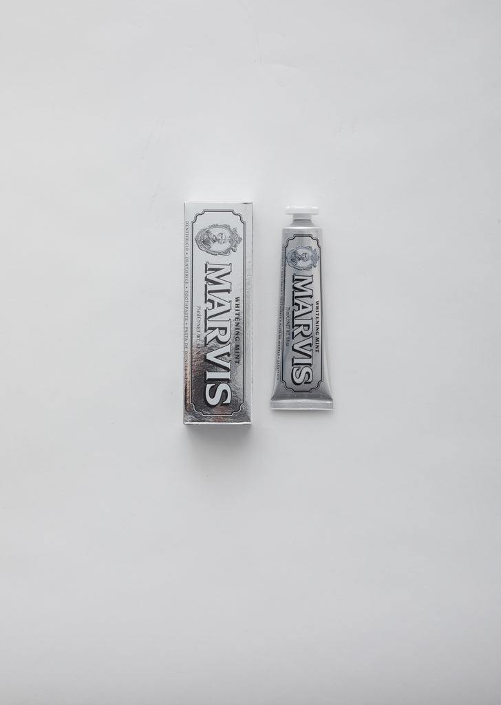 Packaged in a sleek, displayable silver tube, Marvis’ Whitening Mint toothpaste boasts a sharp, breath-freshening mint flavor and gentle whitening capabilities. This toothpaste has undergone a traditional processing method that guarantees a dense texture, maximum protection, and a bright smile.