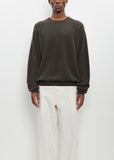 Frenckenberger signature black olive crewneck sweater with raglan sleeves in an ultra-soft mid-weight cashmere knit. Features a relaxed, blouson silhouette and rib trim finish along neckline with a wider rib trim finish at the cuffs and hem.