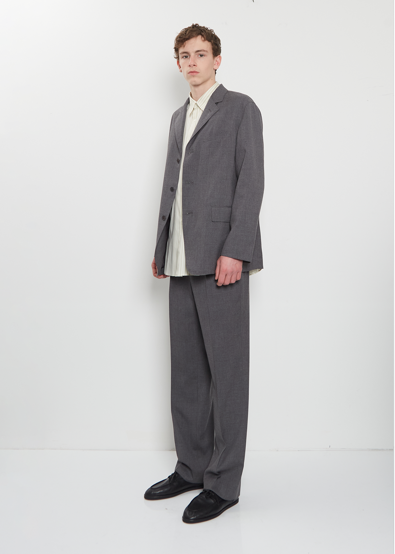Auralee charcoal grey single-breasted blazer with slim notched lapels and set-in shoulders in refined and airy cashmere poplin. Features a curved hem at front, straight hem at back and a horn-hued buttons placket. Comes unlined. Regular fit.