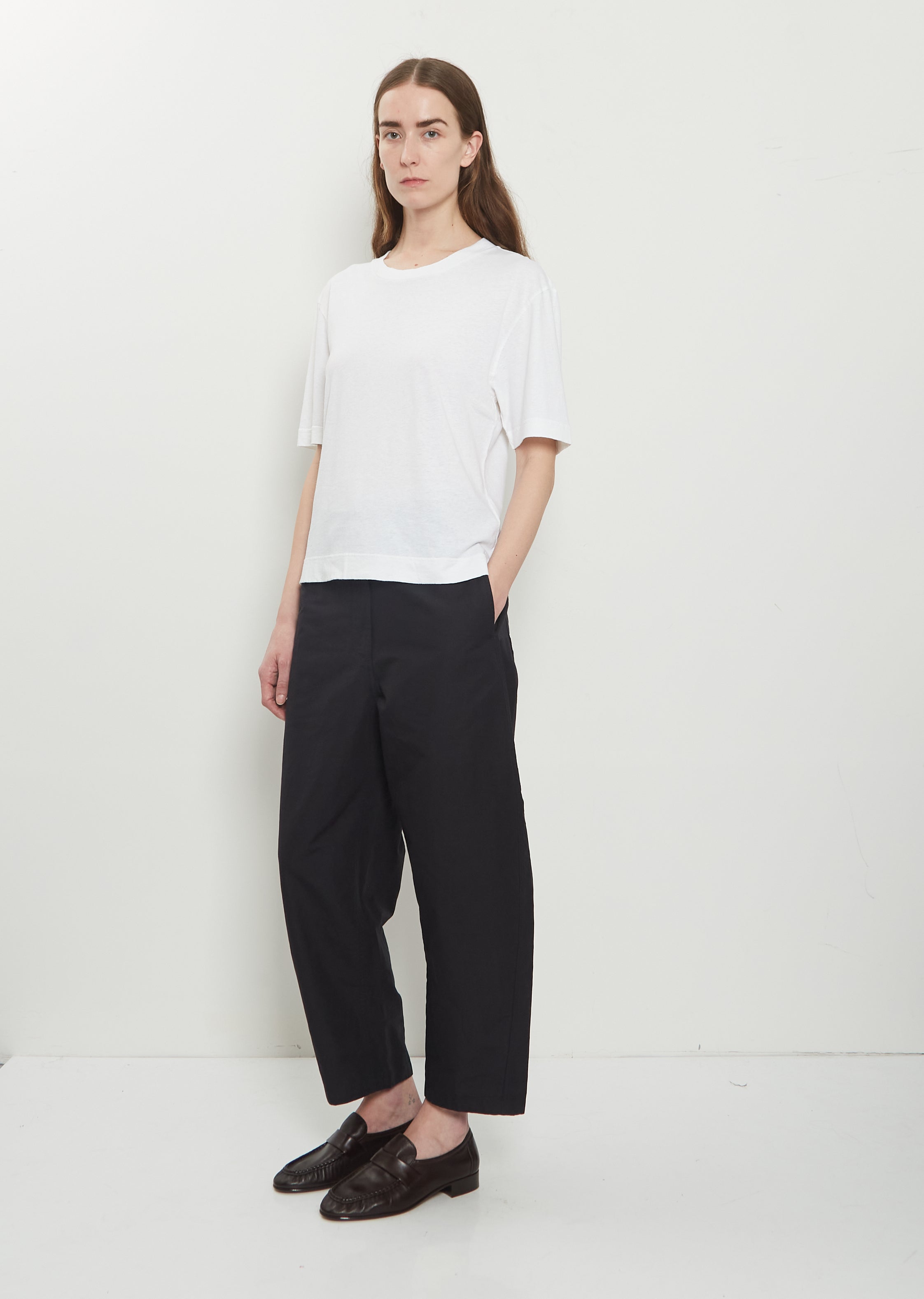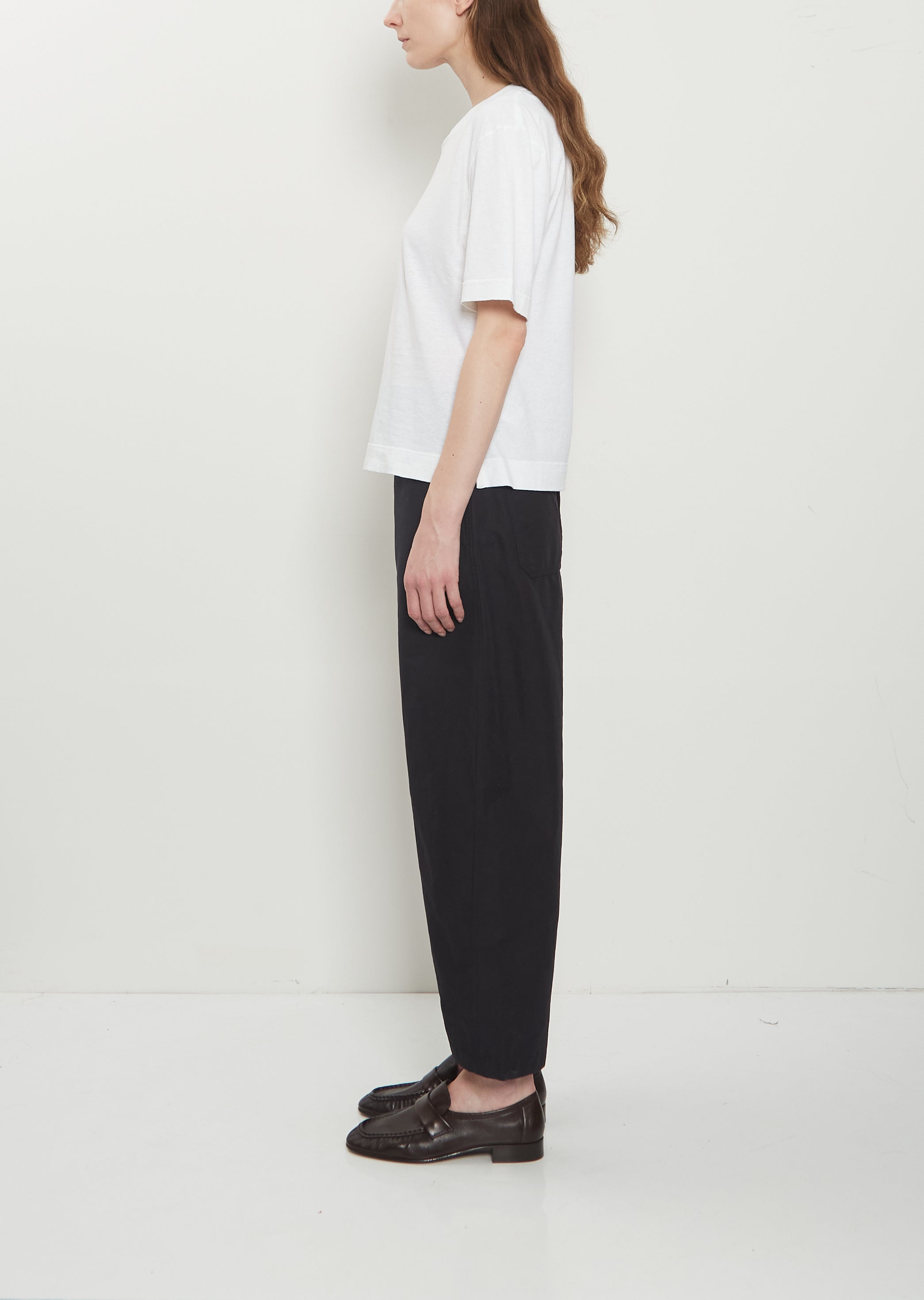 Worn with: Barrel Leg Cotton Linen Trousers and Soft Leather Loafer — Dark Brown