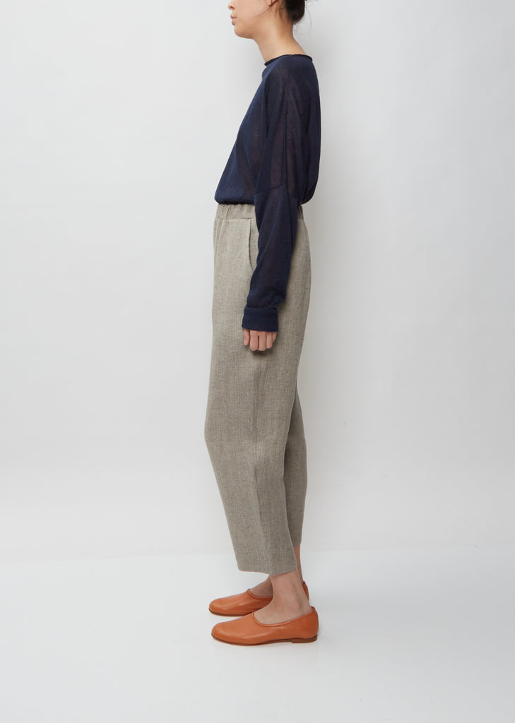 Dušan beige cropped pull-on trouser in a herringbone hemp and linen blend.