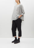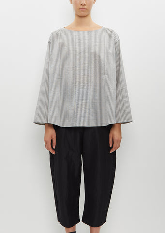Apuntob anthracite grey striped long sleeve pullover top in cotton and silk blend. Features a boat neckline and curved hem. Easy fit.