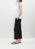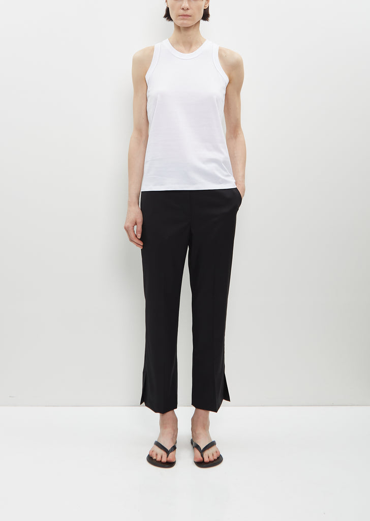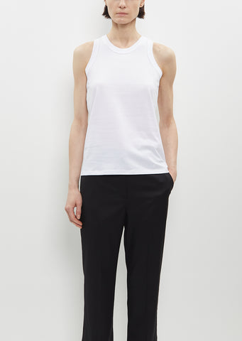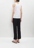 Loulou Studio black tank top with a round neckline in supima cotton. Features a rib trim at neckline and armholes. Finished with signature embroidered shell at bottom left. Straight, regular fit.