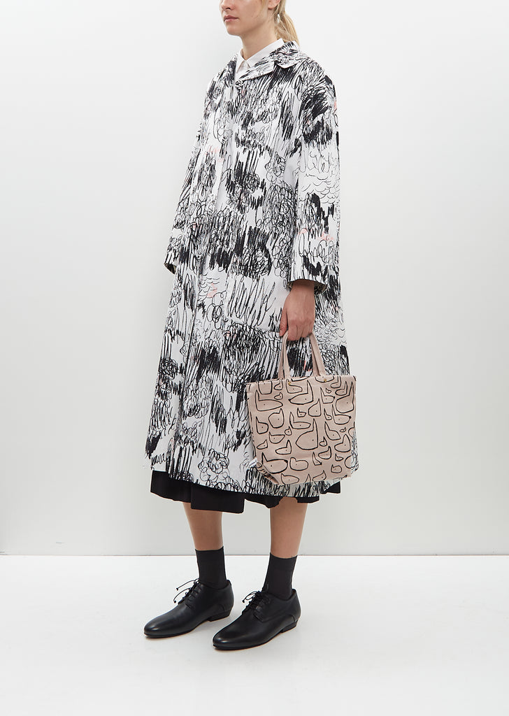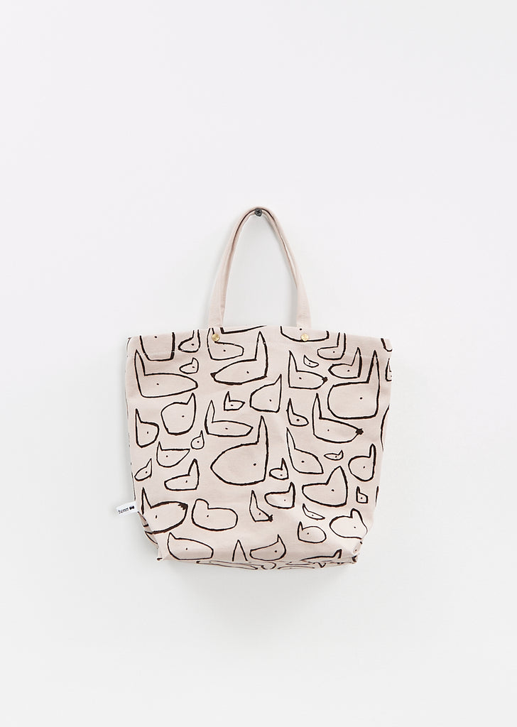 Minä Perhonen light pink small tote bag with top handles in cotton canvas with dark brown dogs pattern.
