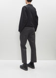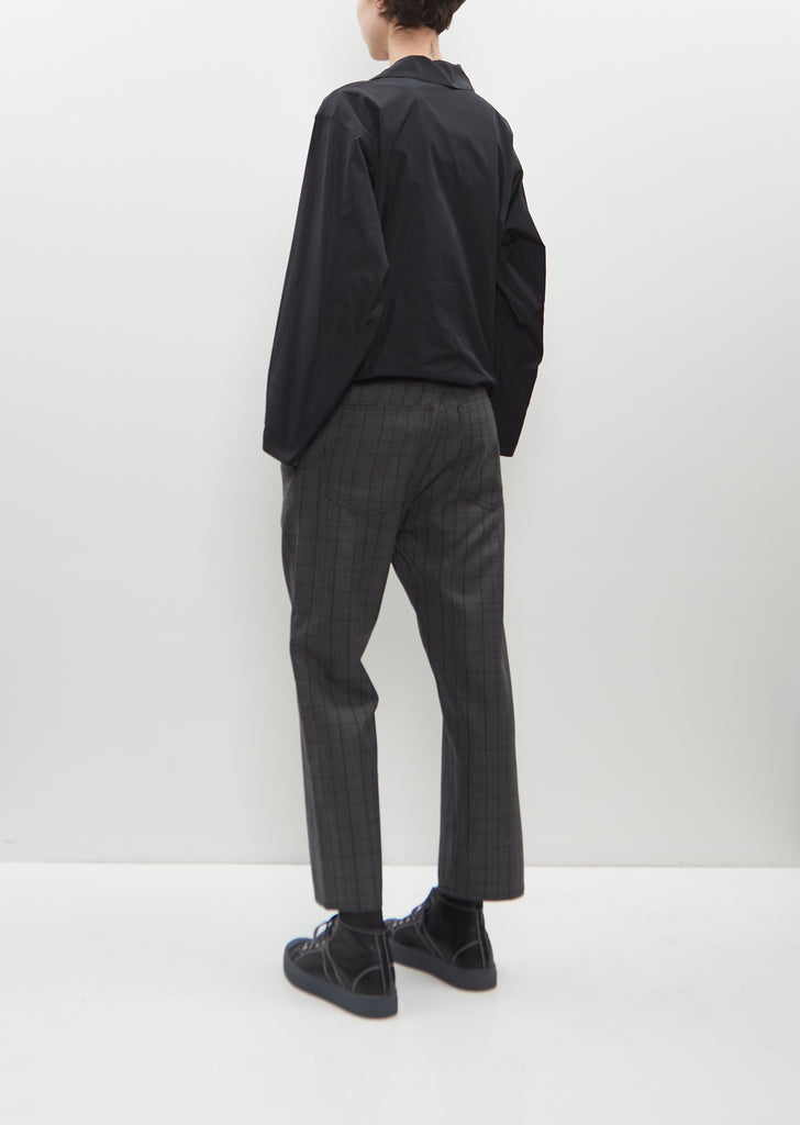 Sofie D'Hoore black and grey houndstooth straight pants with wide legs in wool twill. Features belt loops, two angled pockets at front, two patch pockets at back, and a five button concealed fly fastening.