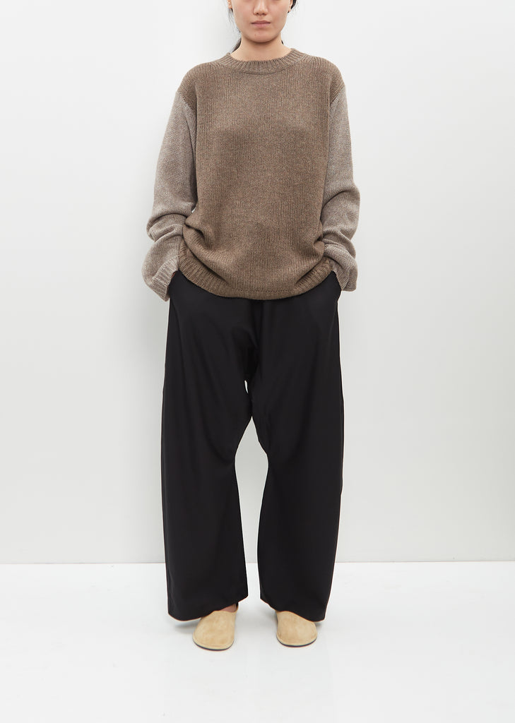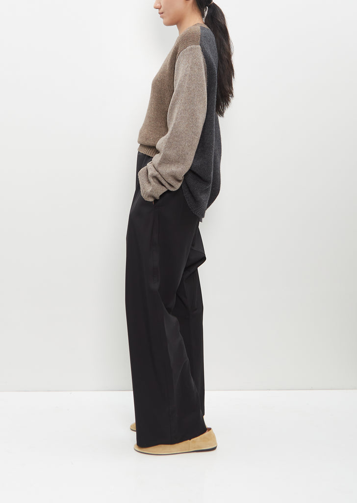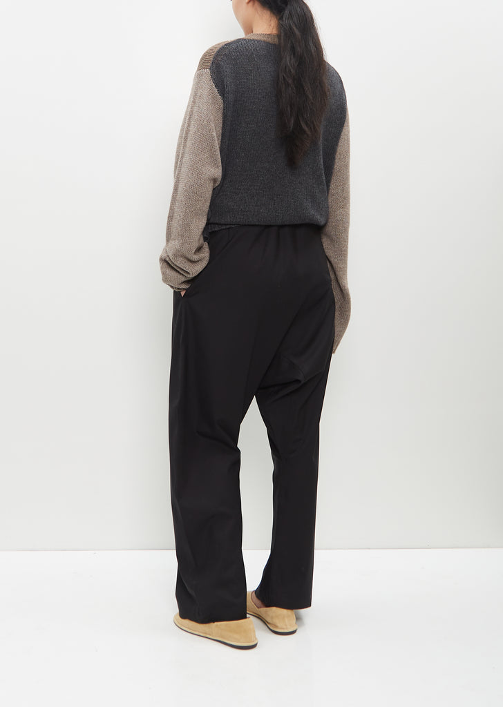 Sofie D'Hoore black cropped pants with a dropped rise in light wool twill. Features wide legs with a soft curve, concealed side seam pockets, and an interior waist tie to adjust fit.