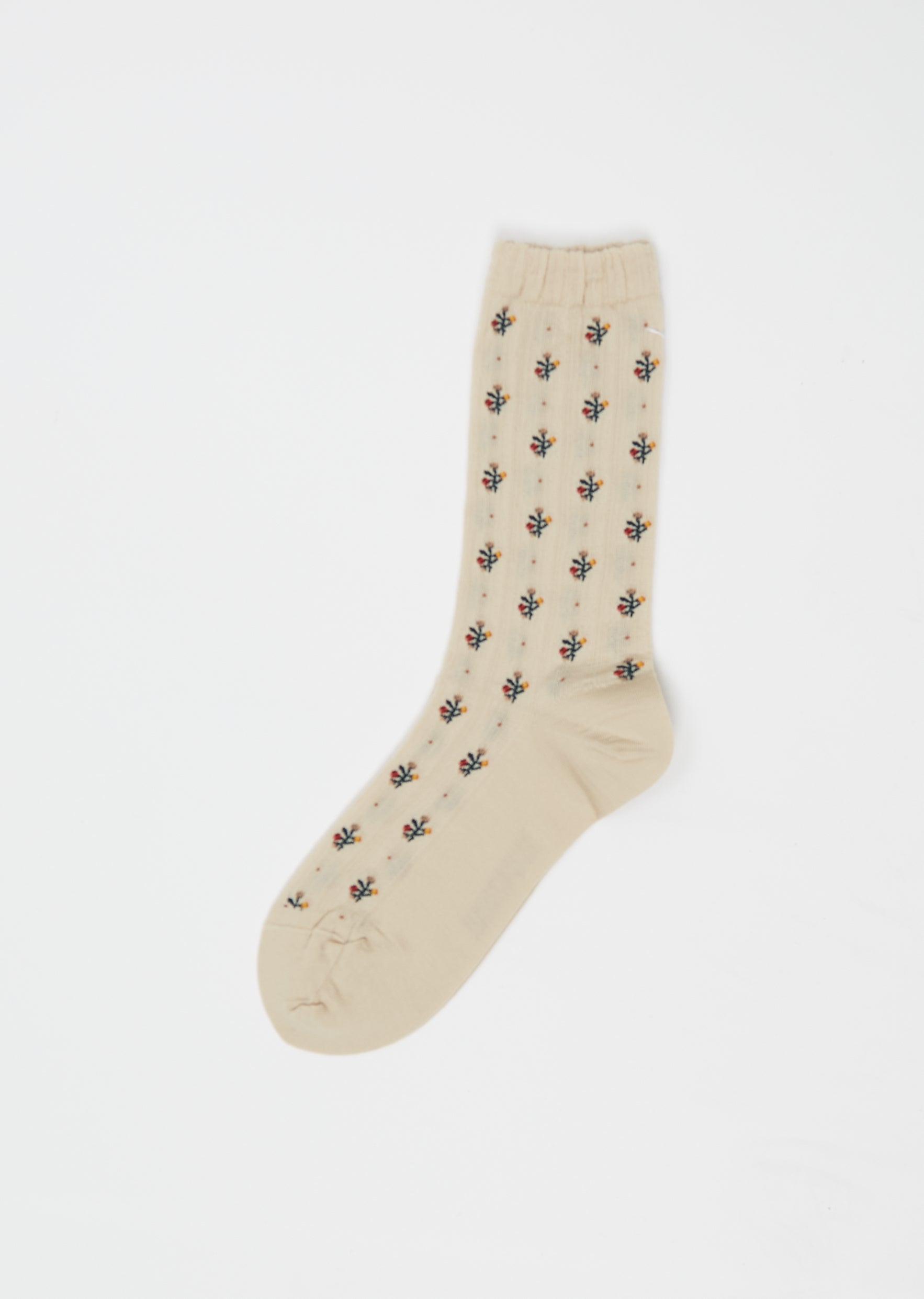 Flower Stripes Stretch Wool Socks — Beige