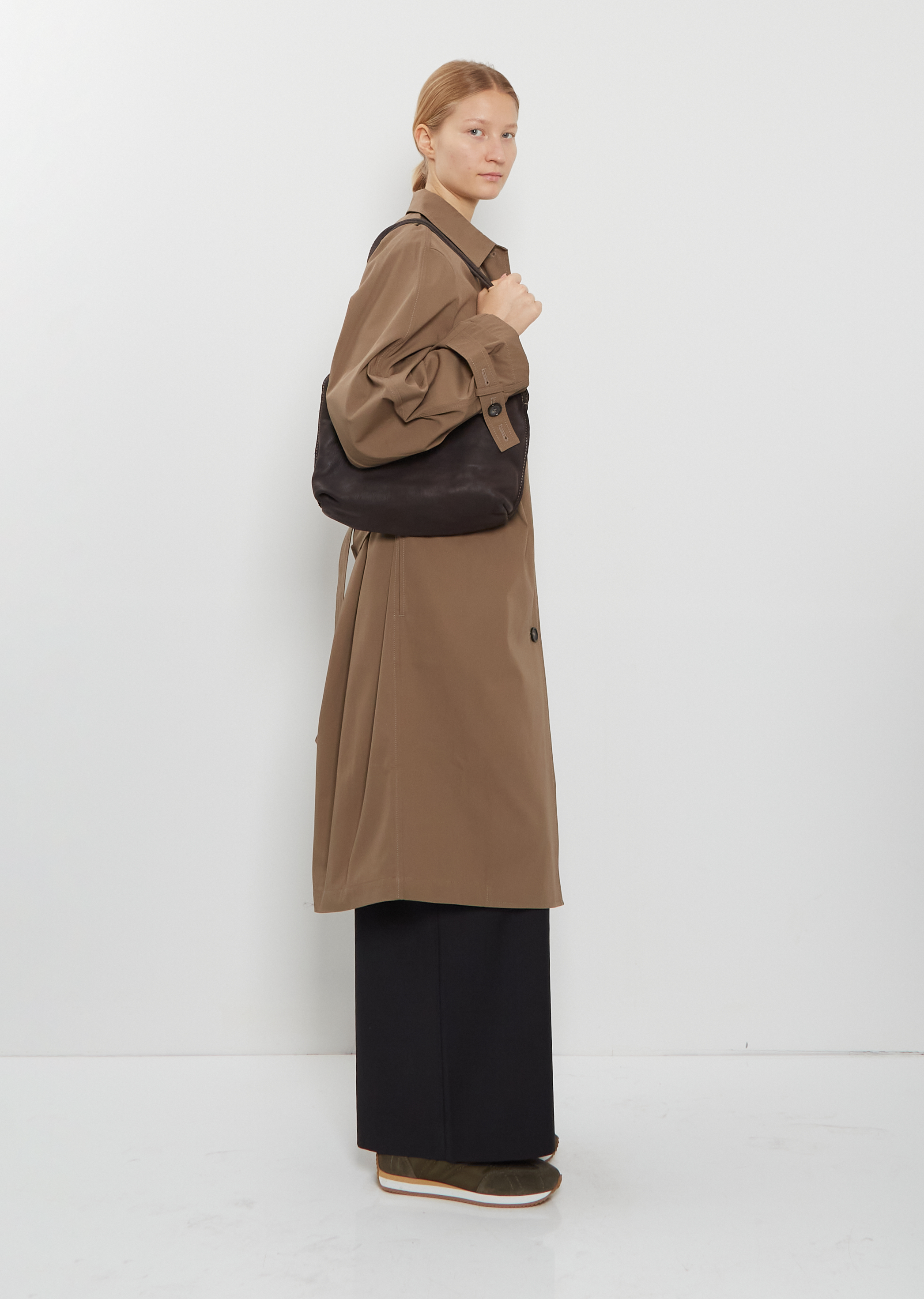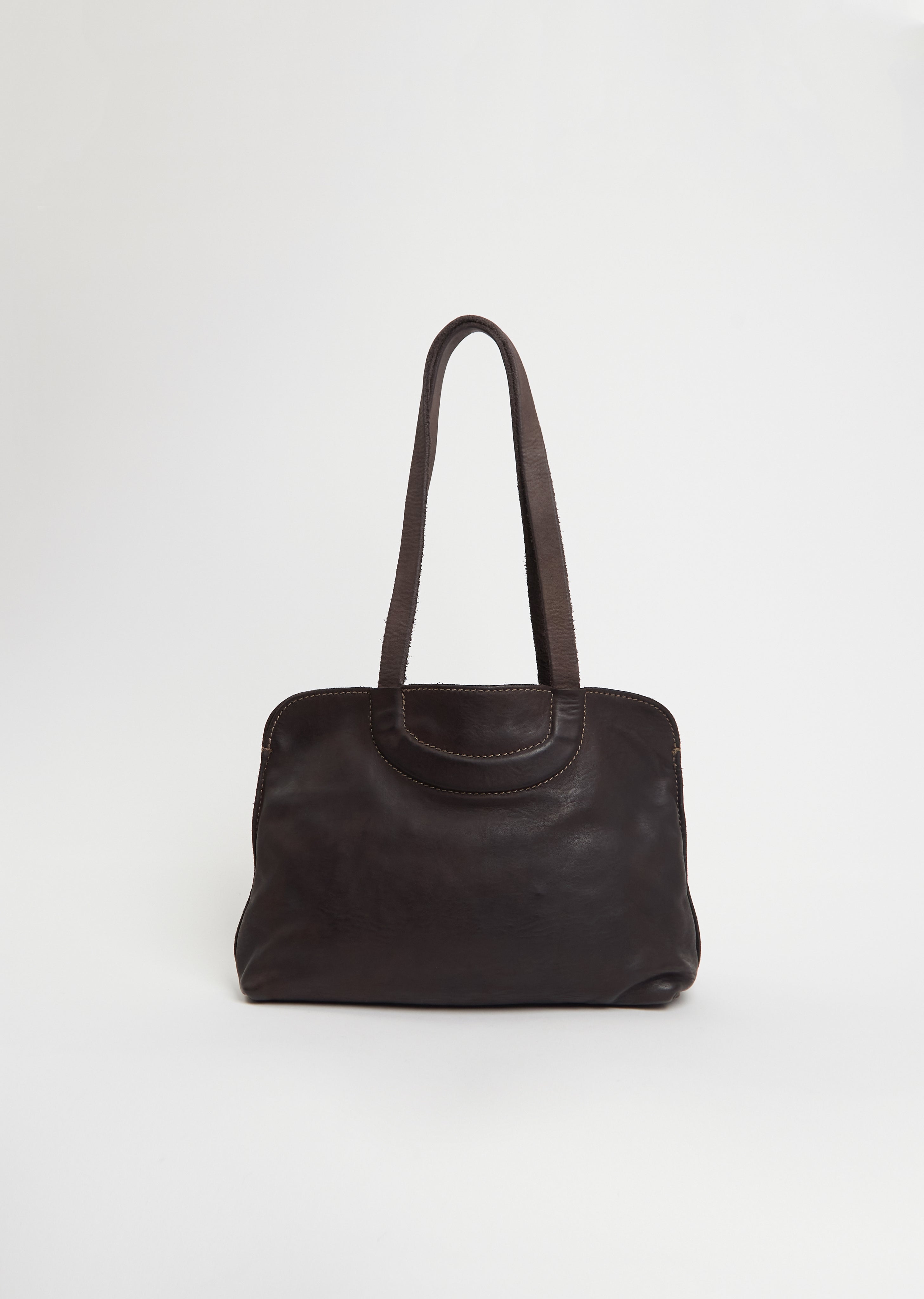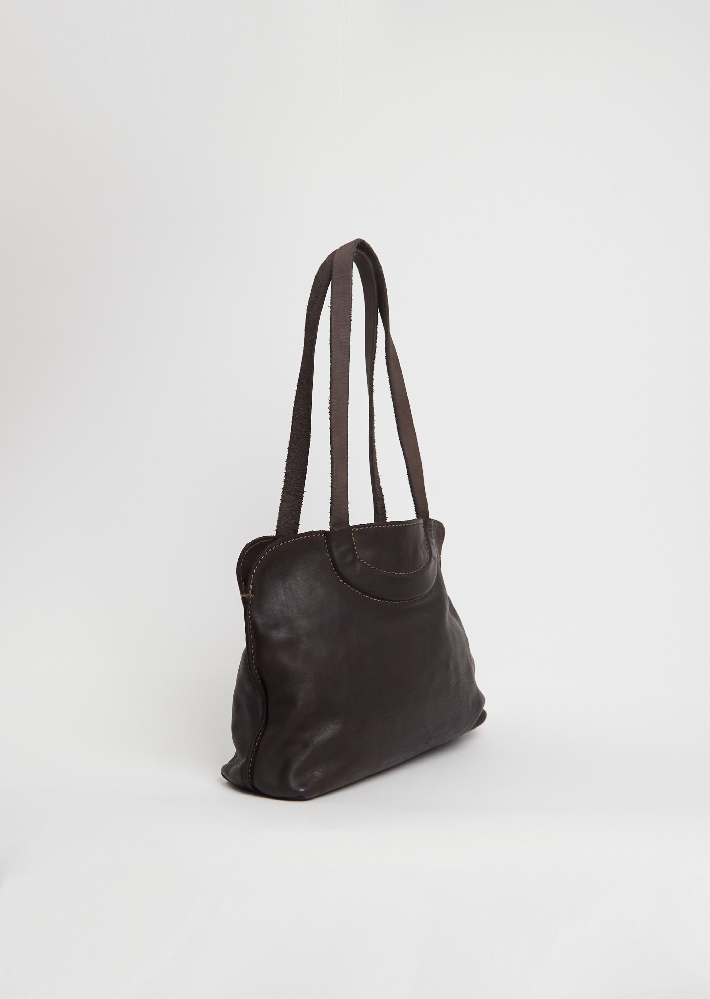 Guidi dark brown shoulder bag in the small size with flat shoulder straps in soft horse full grain leather. Features a two interior slip pocket. Fully lined in black nylon.