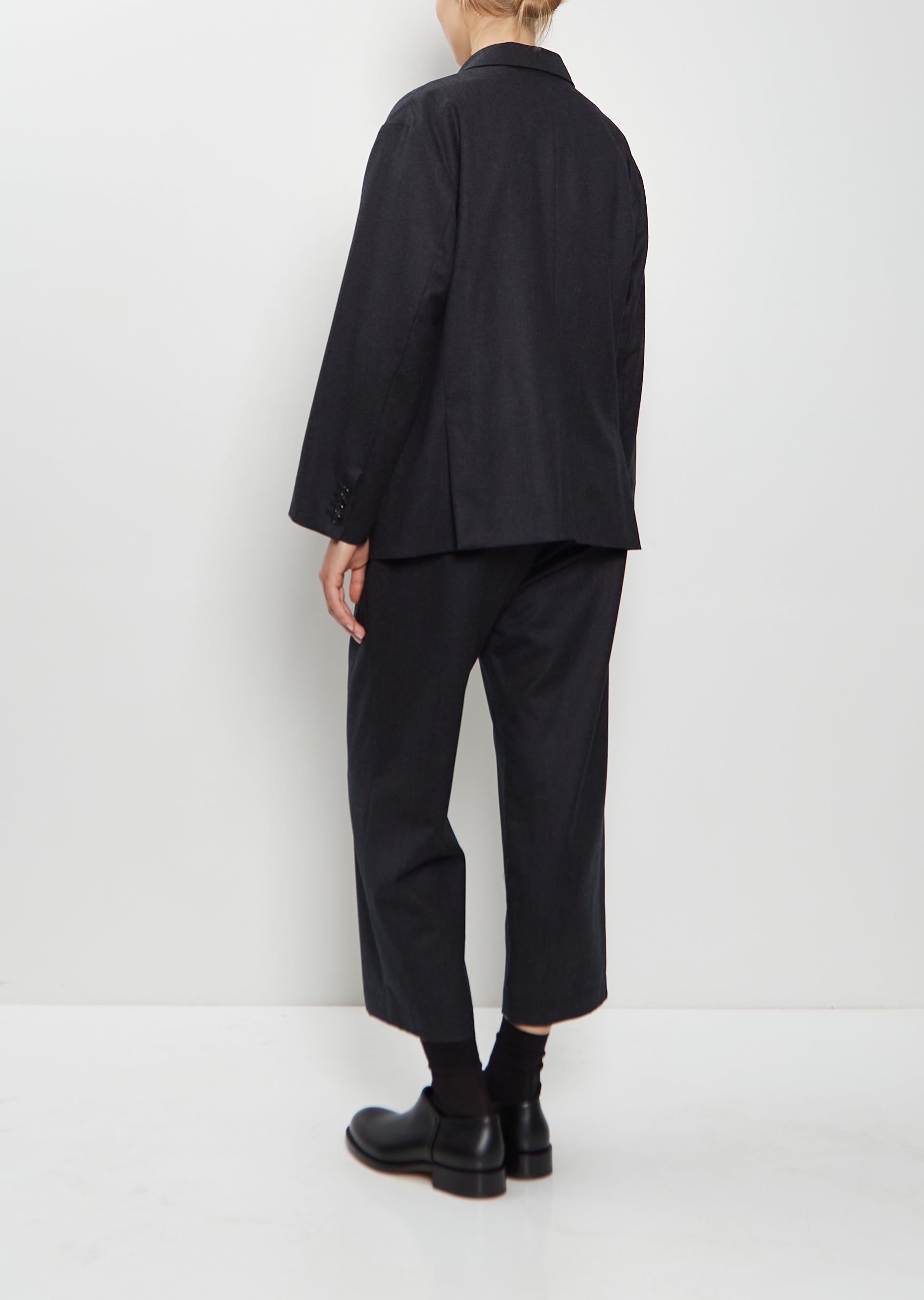 Color: Charcoal. 100% Wool. Body Lining: 100% Cotton. Sleeve Lining: 100% Cupro. Made in Japan.