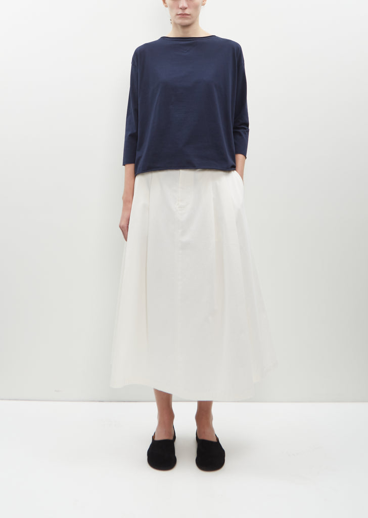 Labo.art dark navy boat neck t-shirt with a straight collar in stretch cotton jersey. Straight silhouette with a relaxed fit.